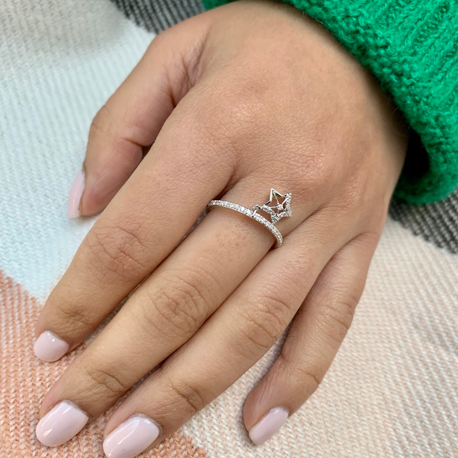 Dazzling Star Bezel Diamond Ring in Sterling Silver