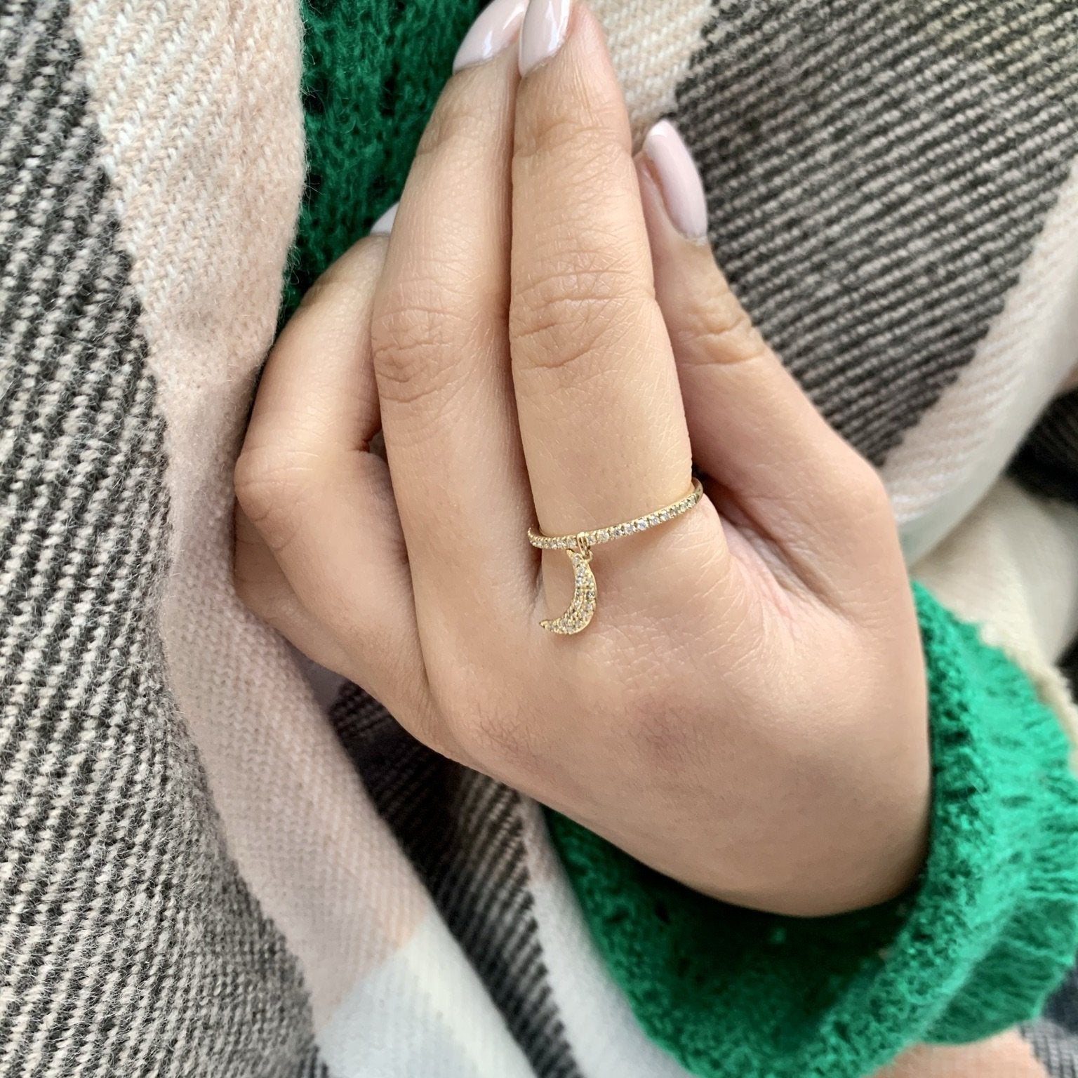 Moonlit Diamond Charm Ring in 14K Yellow Gold Vermeil on Sterling Silver