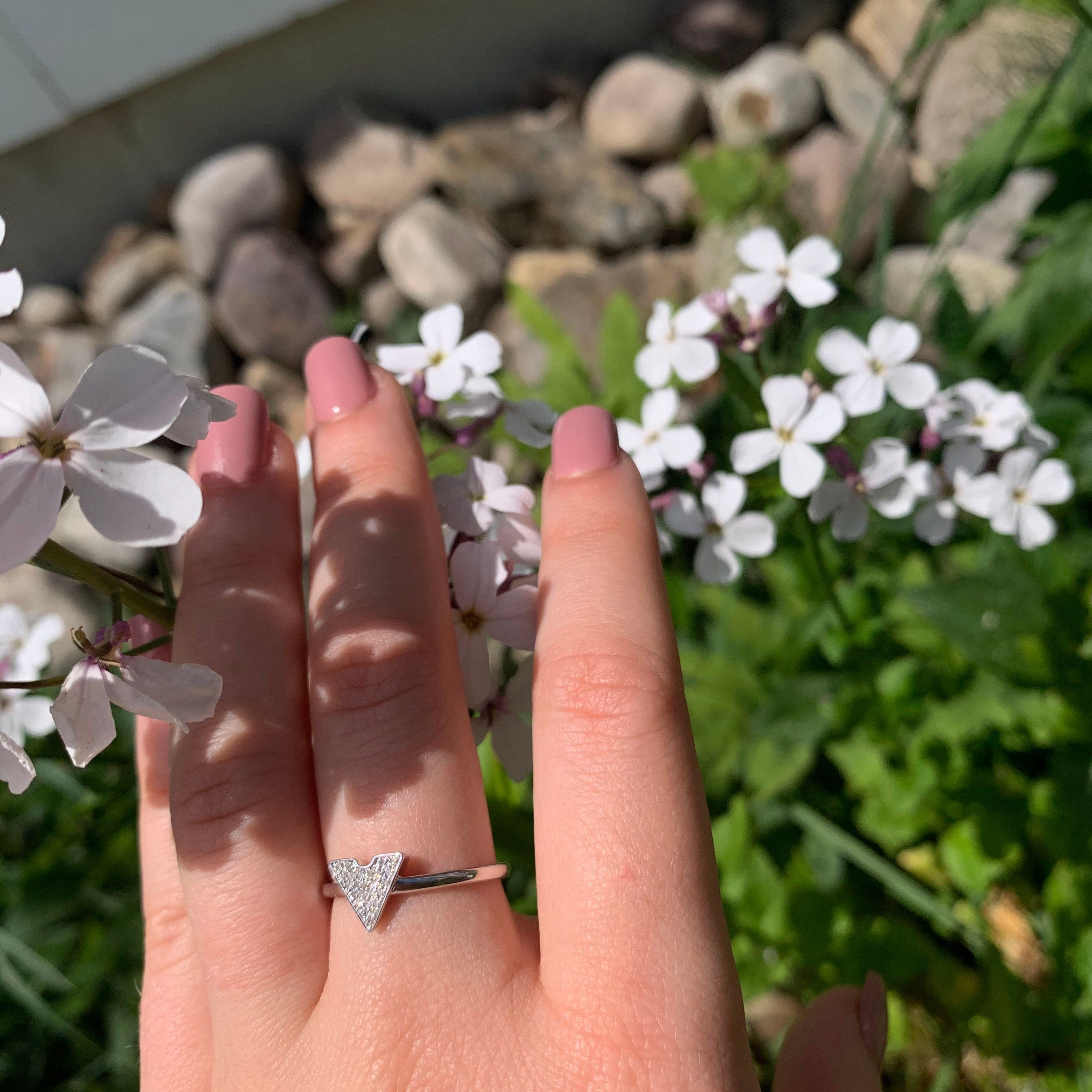 One Way Arrow Diamond Open Ring in Sterling Silver