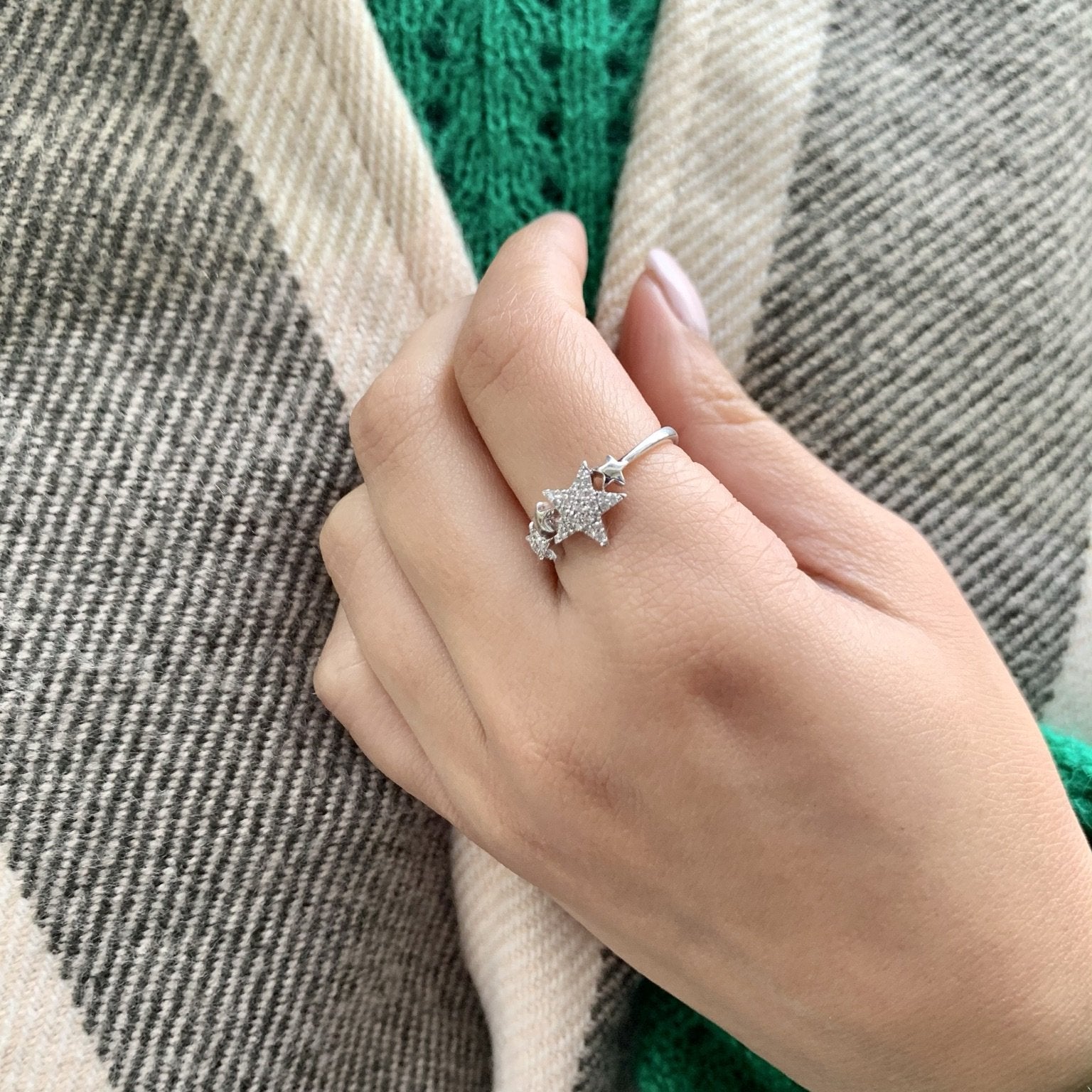 Dazzling Star Cluster Diamond Ring in Sterling Silver