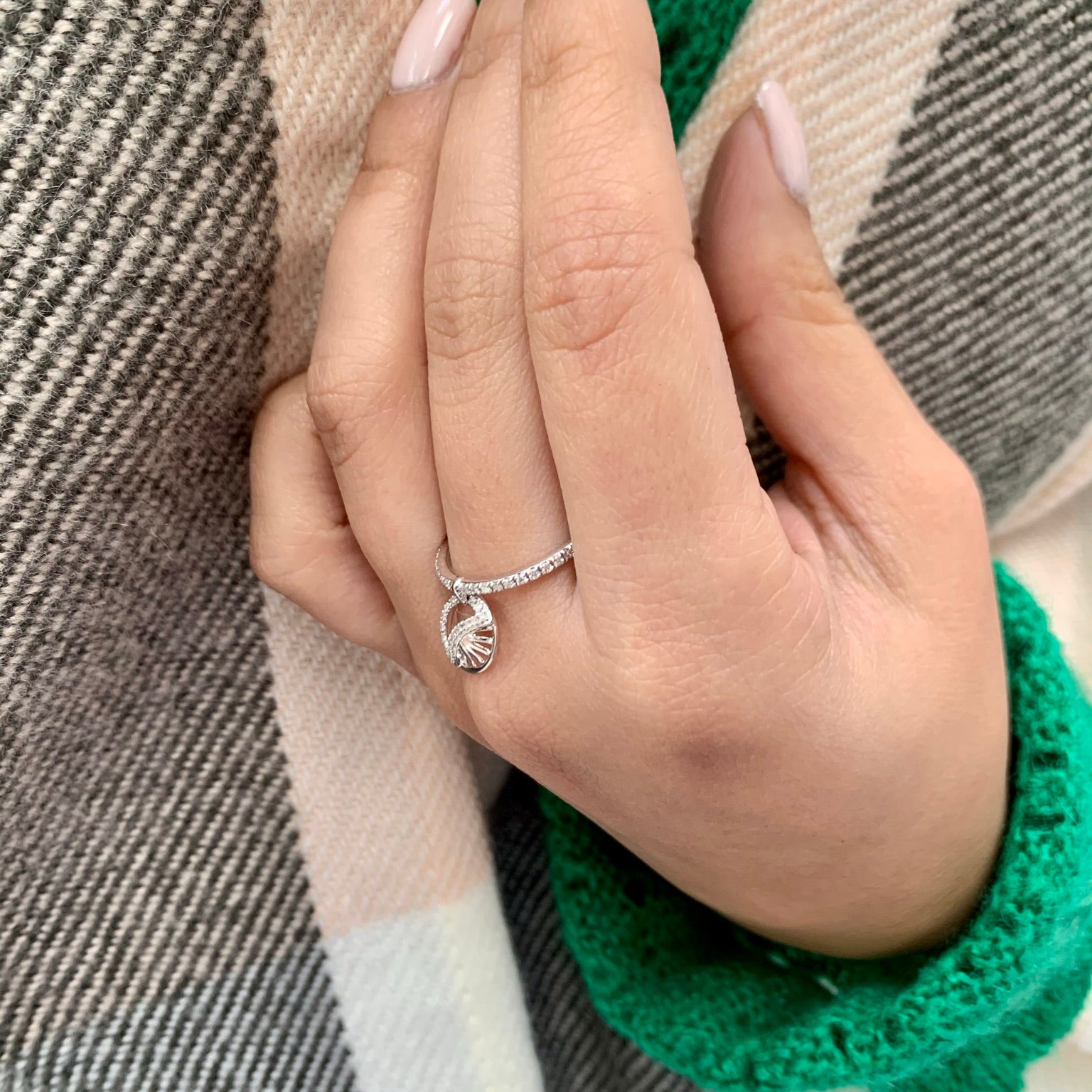 Moon Phases Diamond Charm Ring in Sterling Silver