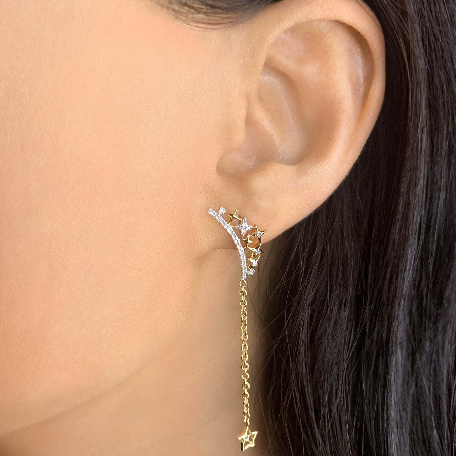 Starry Cascade Tiara Diamond Drop Earrings in 14K Yellow Gold Vermeil on Sterling Silver