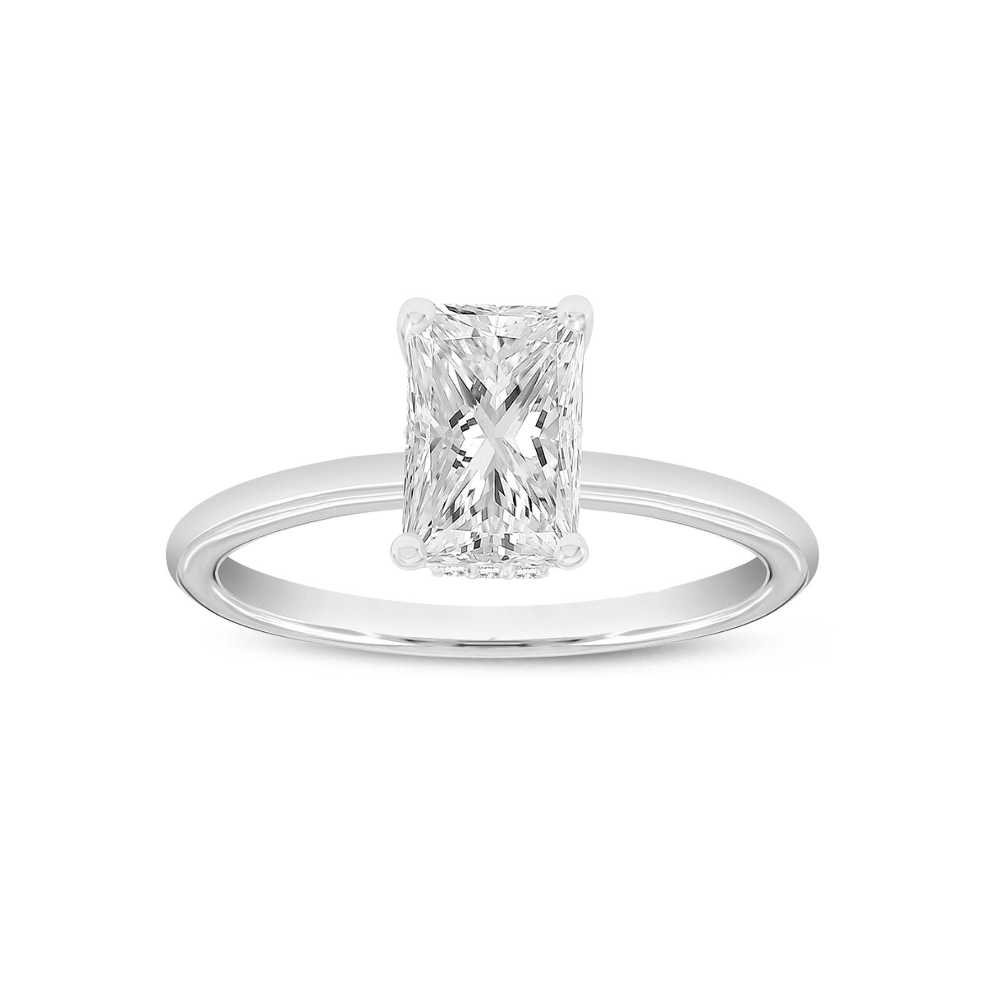 Ahlam 14K White Gold Radiant Cut Lab Grown Diamond Hidden Halo Engagement Ring - 1.55 Ct