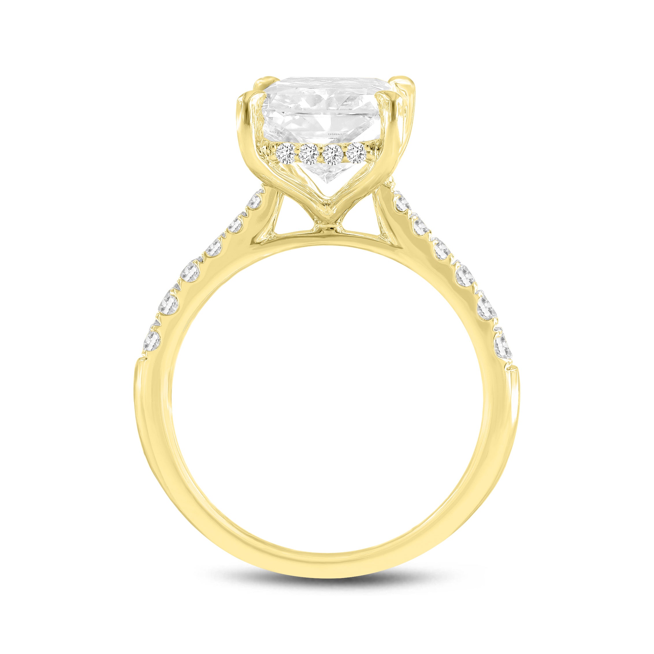 Bayan 14K Yellow Gold Radiant Cut Lab Grown Diamond Hidden Halo Engagement Ring - 5.5 Ct