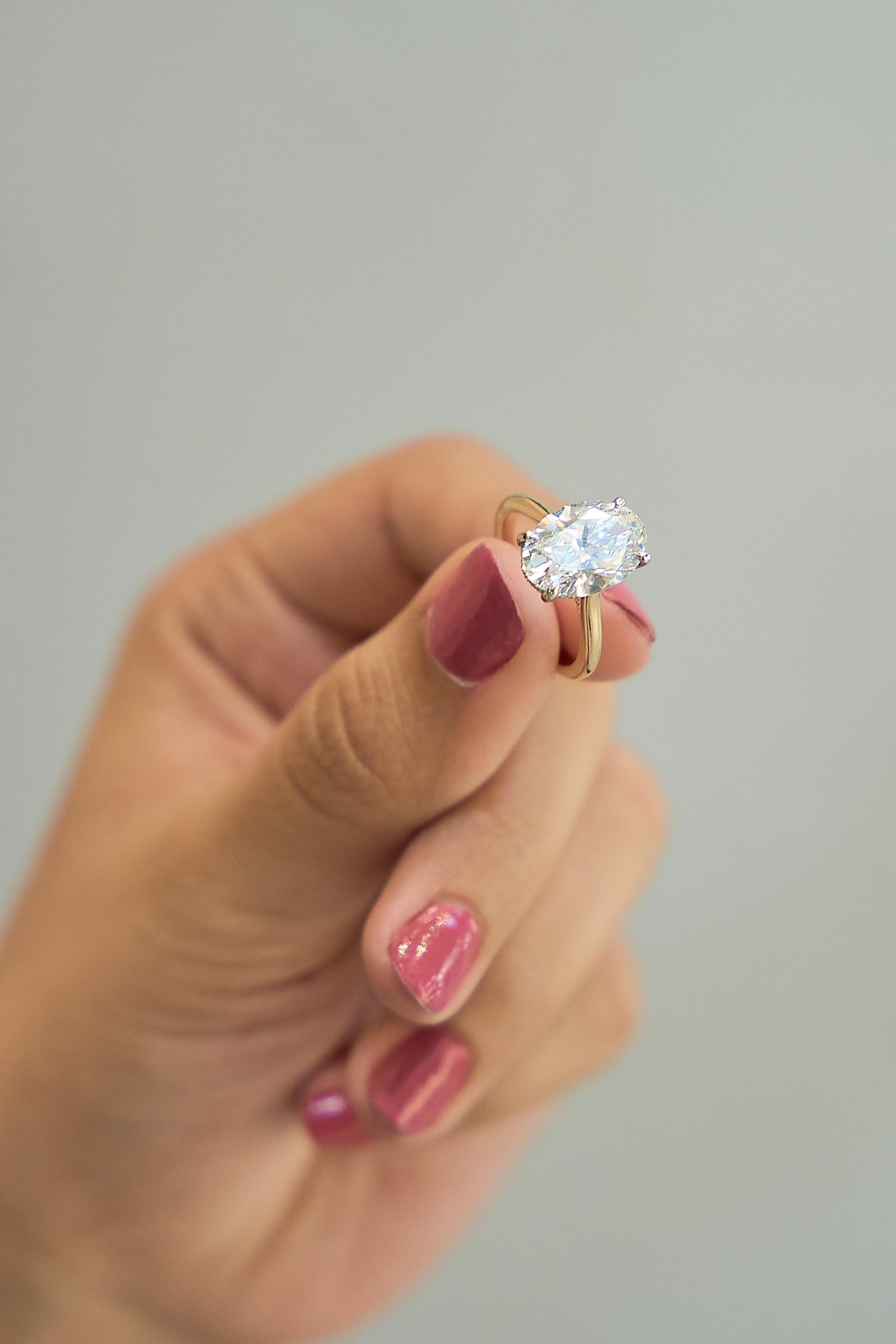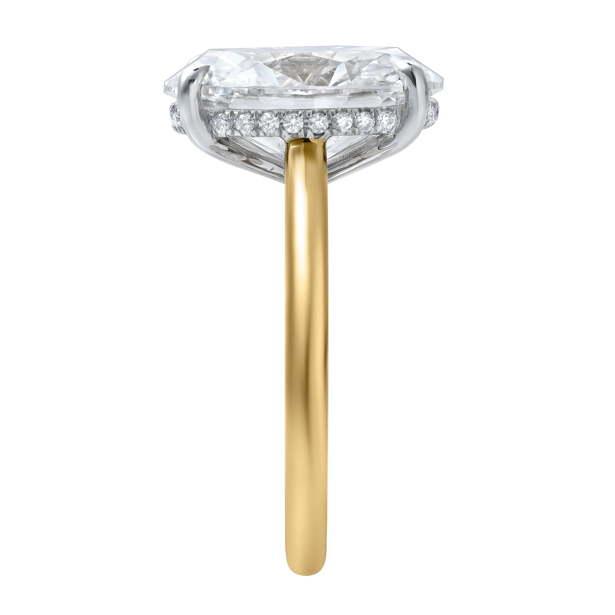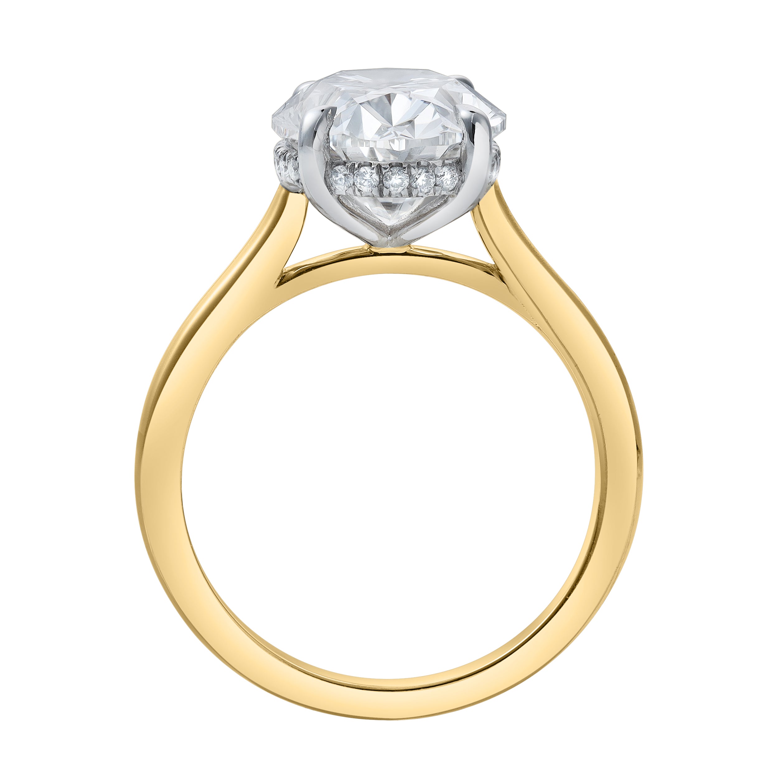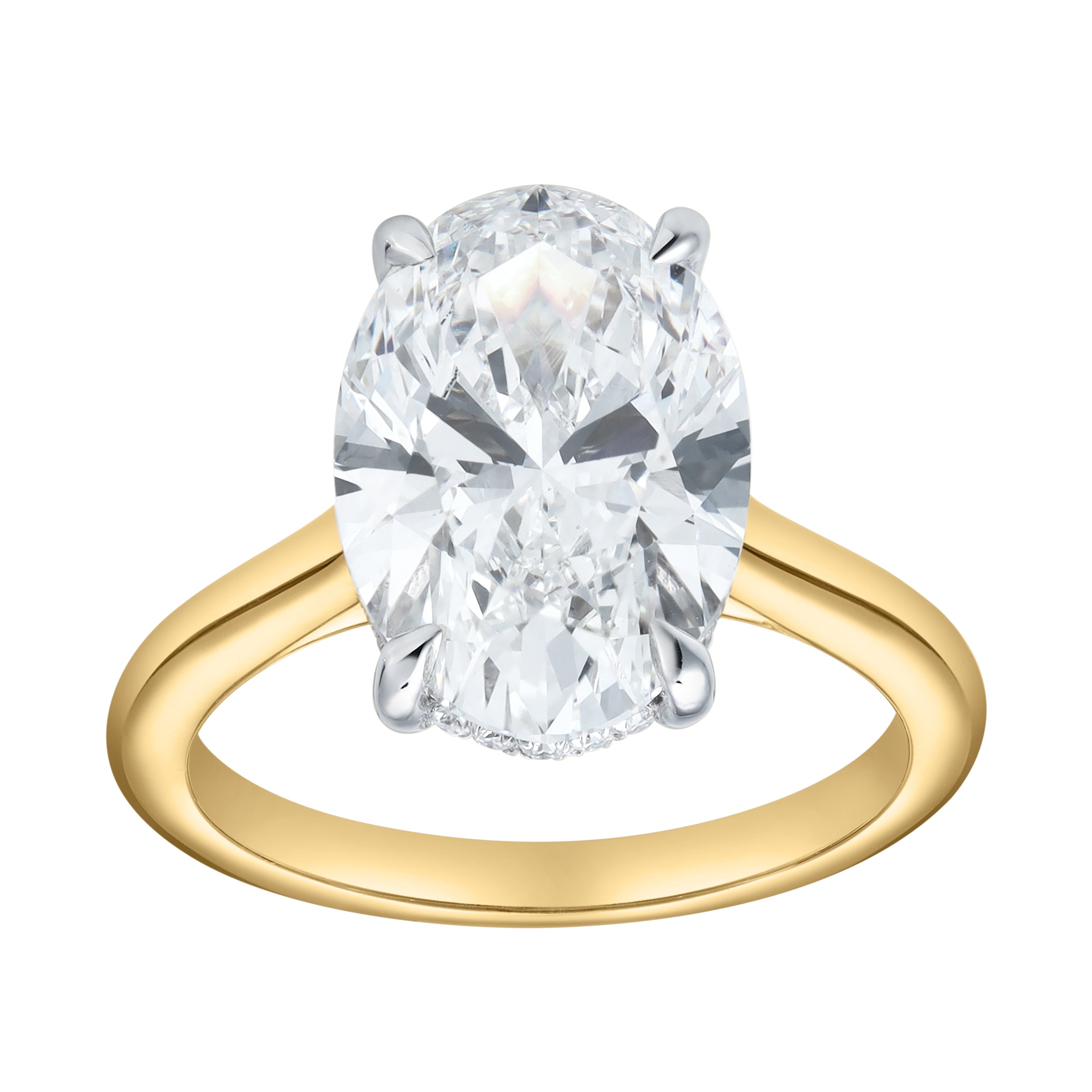 Classic design meets modern sustainability in the Celestia Oval Cathedral Engagement Ring. Showcasing a 5.21cts brilliant oval-cut lab grown diamond ring, this ring features an elegant hidden halo and cathedral setting that lifts the center stone, maximizing its light and presence.