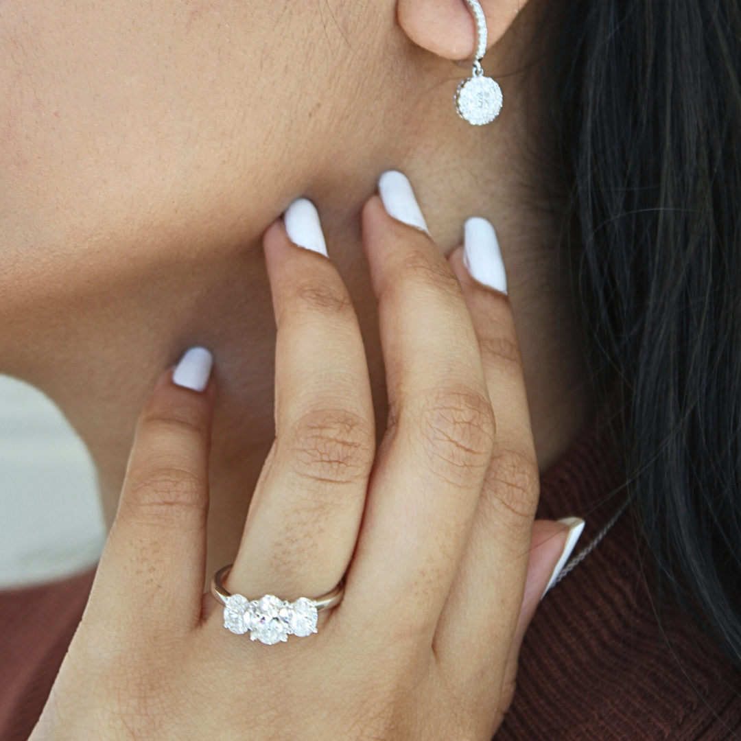 Delila 14K White Gold Oval Cut Lab Grown Diamond Trinity Ring - 2 ct