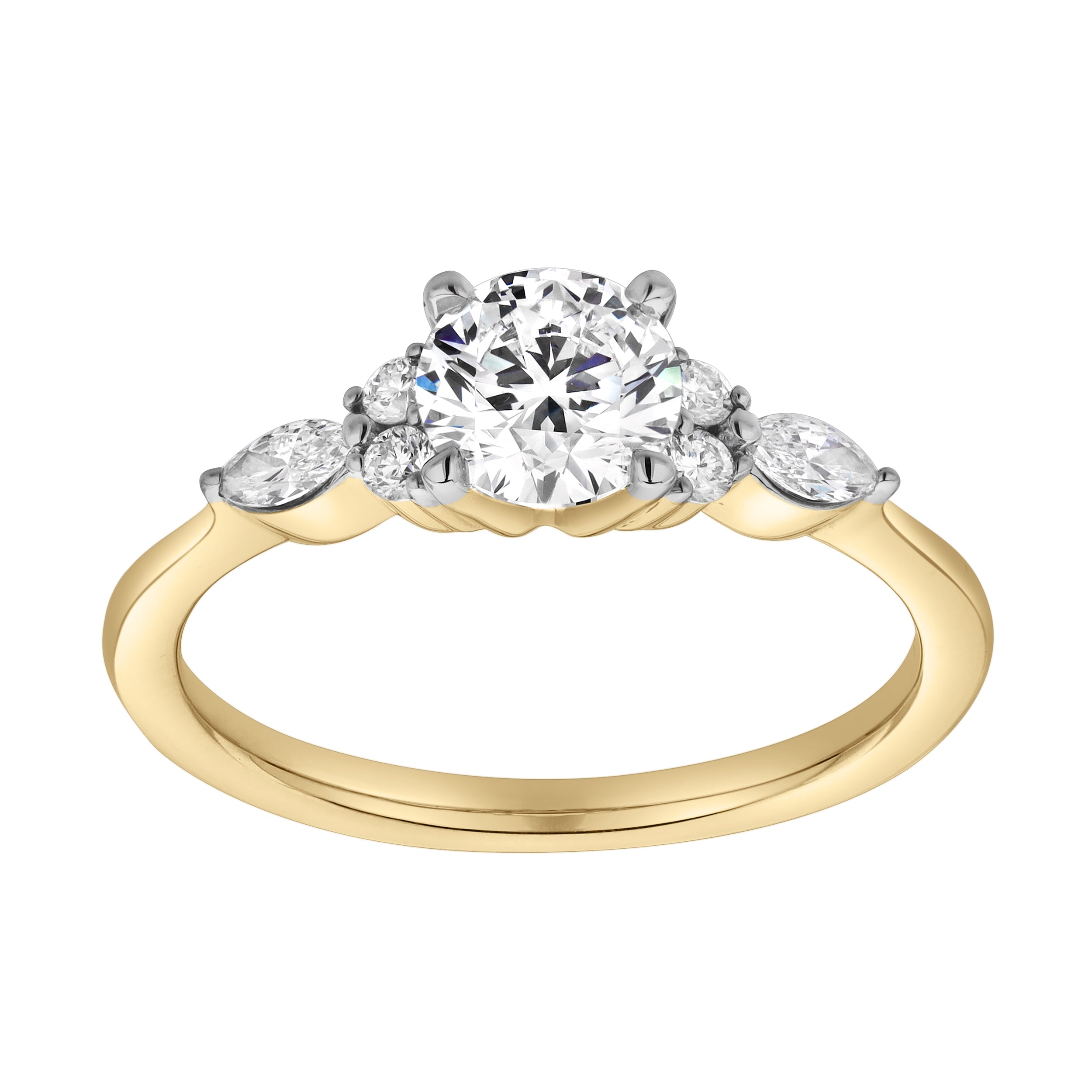 Elora 14K Yellow Gold Round & Marquise Cut Lab Grown Diamond Engagement Ring - 1 Ct