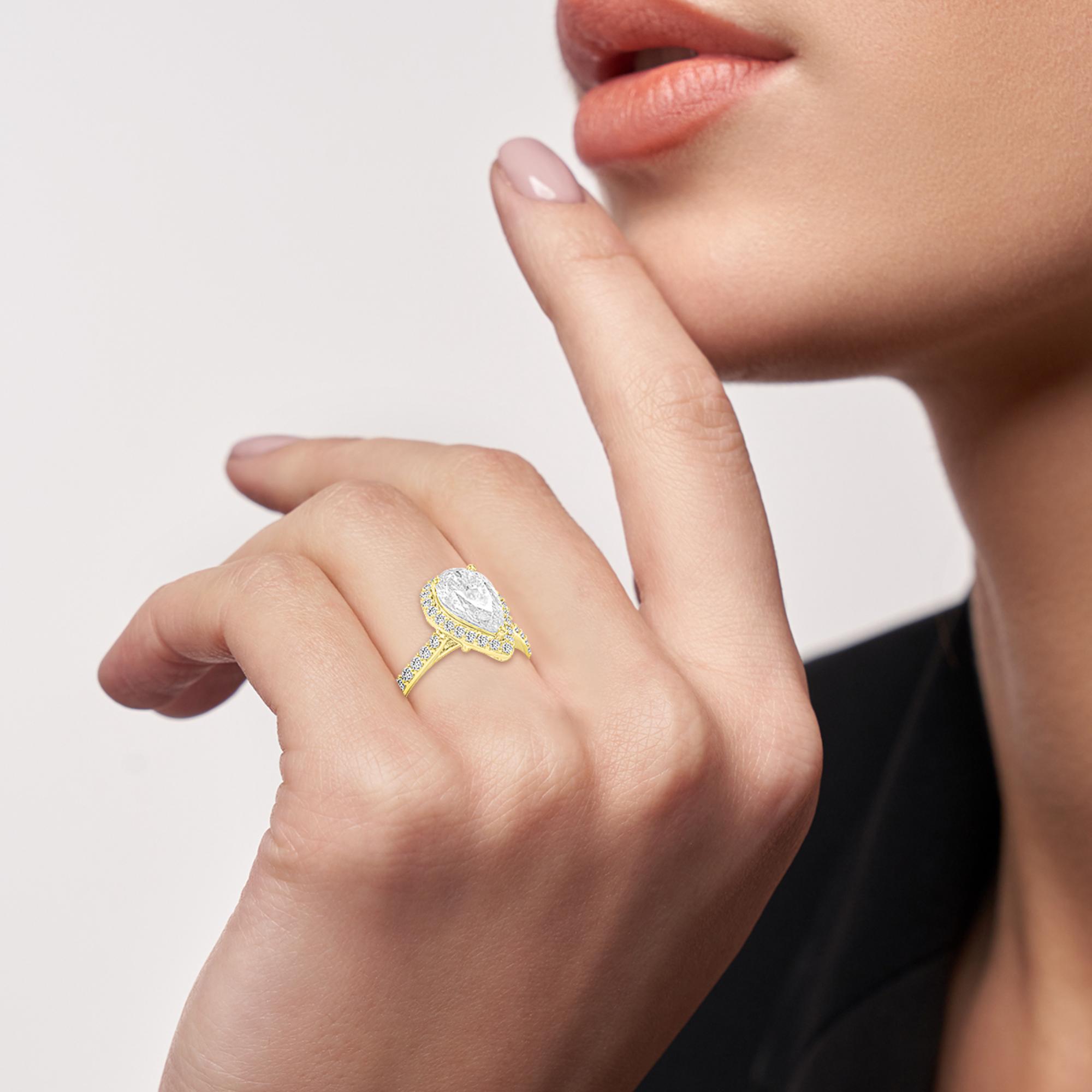 Hana 14K Yellow Gold Pear Lab Grown Diamond Halo Engagement Ring - 2.45 Ct