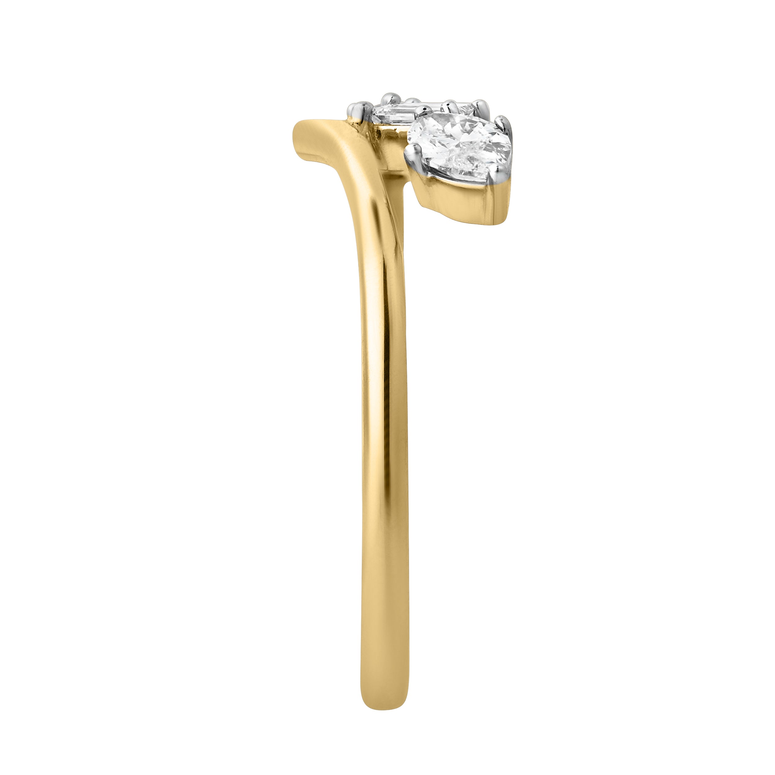 Whimsical and refined, the Larys ring features a trio of distinct lab grown diamond shapes: round, emerald, and marquise and are thoughtfully arranged in an artful cluster totalling to 0.35ct. Set in polished 14K yellow gold, this delicate design brings together asymmetry and elegance in perfect harmony.