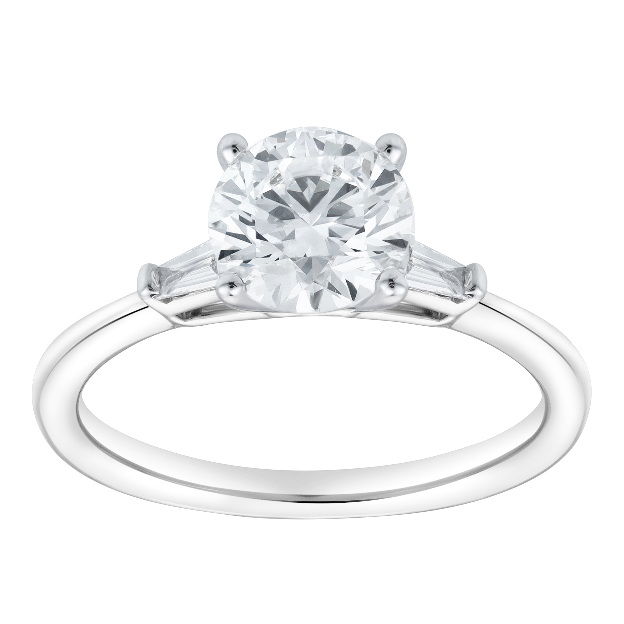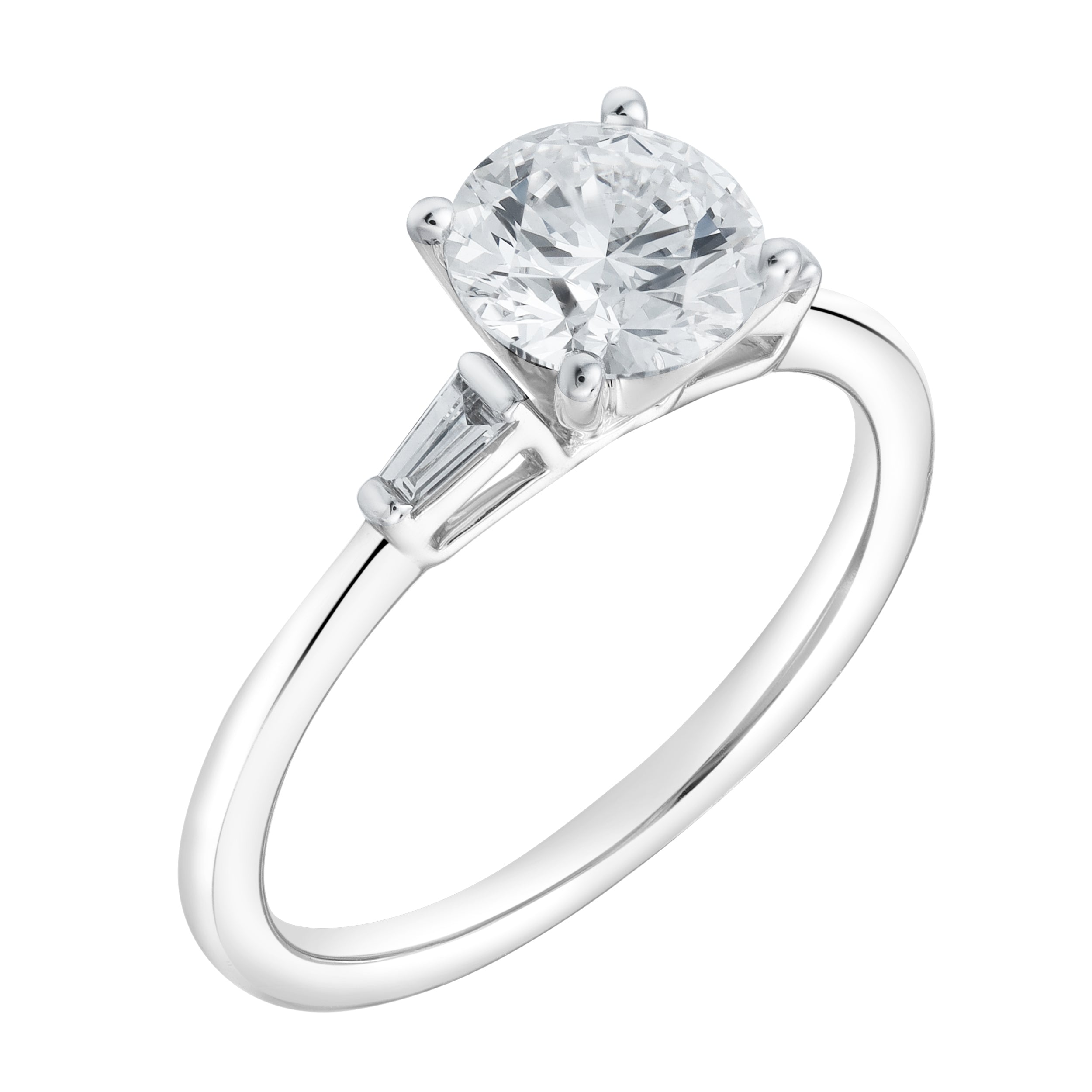 Piper 14K White Gold Round Cut Lab Grown Diamond Tapered Baguettes Engagement Ring - 1.05 Ct
