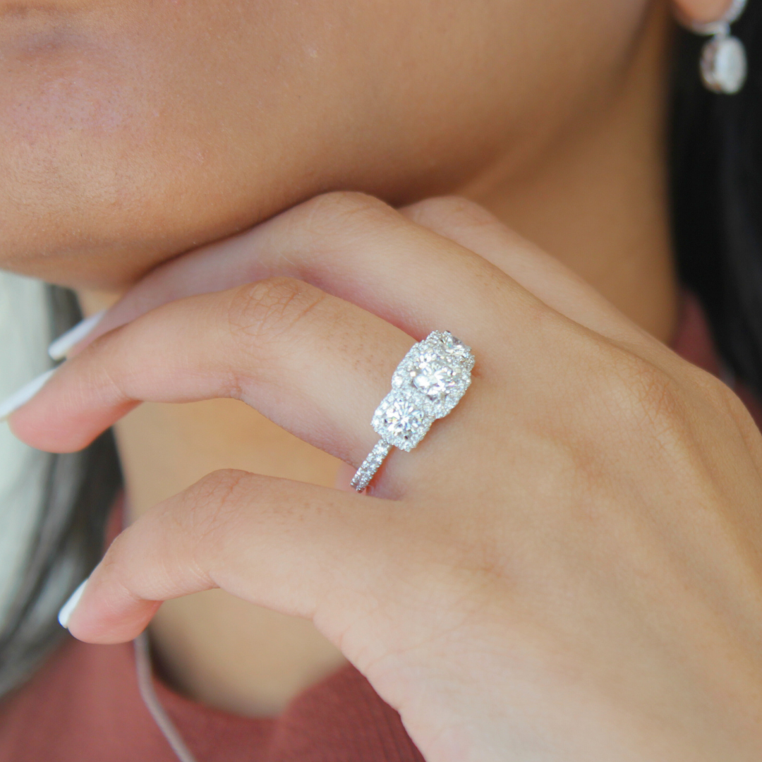 Regalia 14K White Gold Round Cut Lab Grown Diamond Halo Trinity Ring - 2 ct