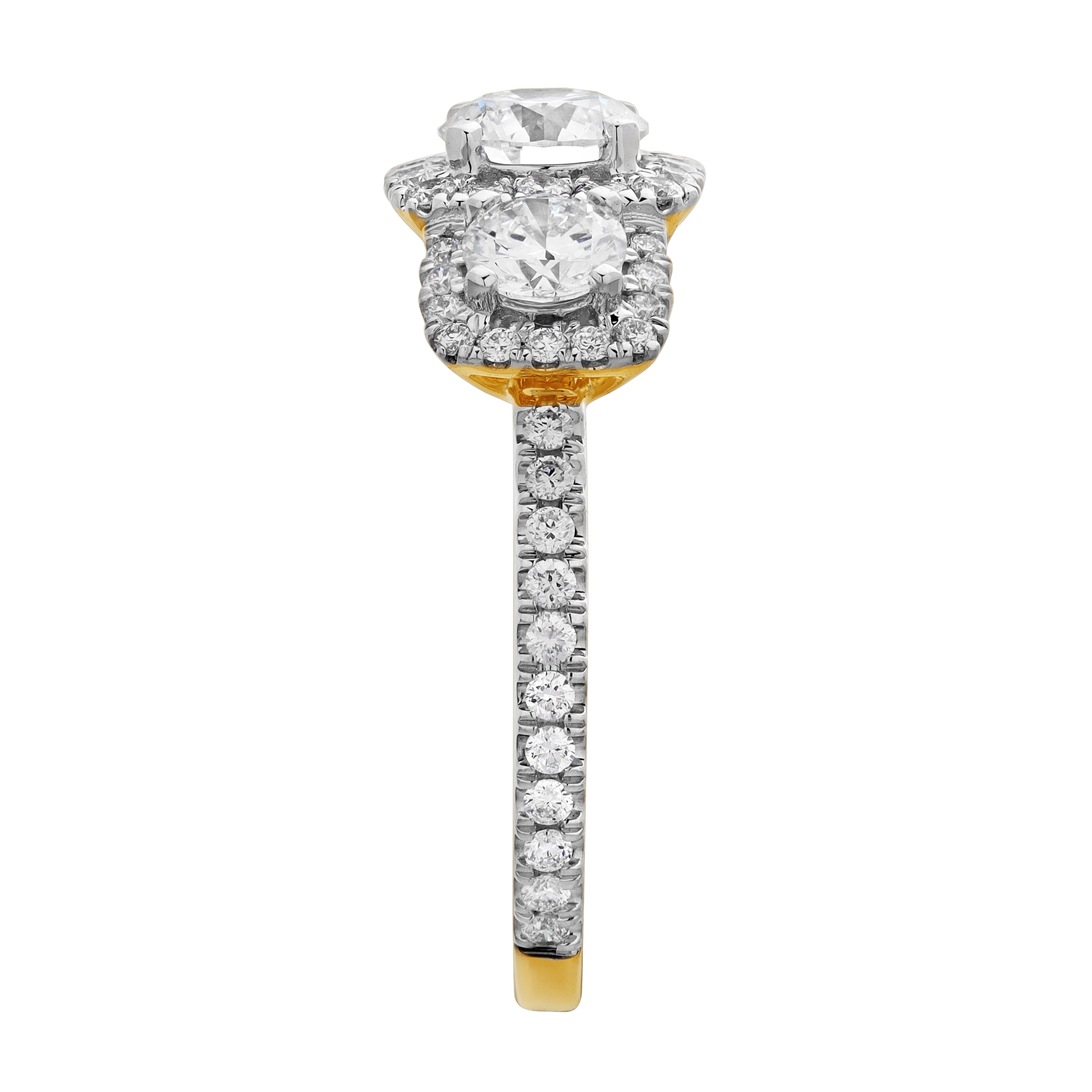 Regalia 14K Yellow Gold Round Cut Lab Grown Diamond Halo Trinity Ring - 2 ct