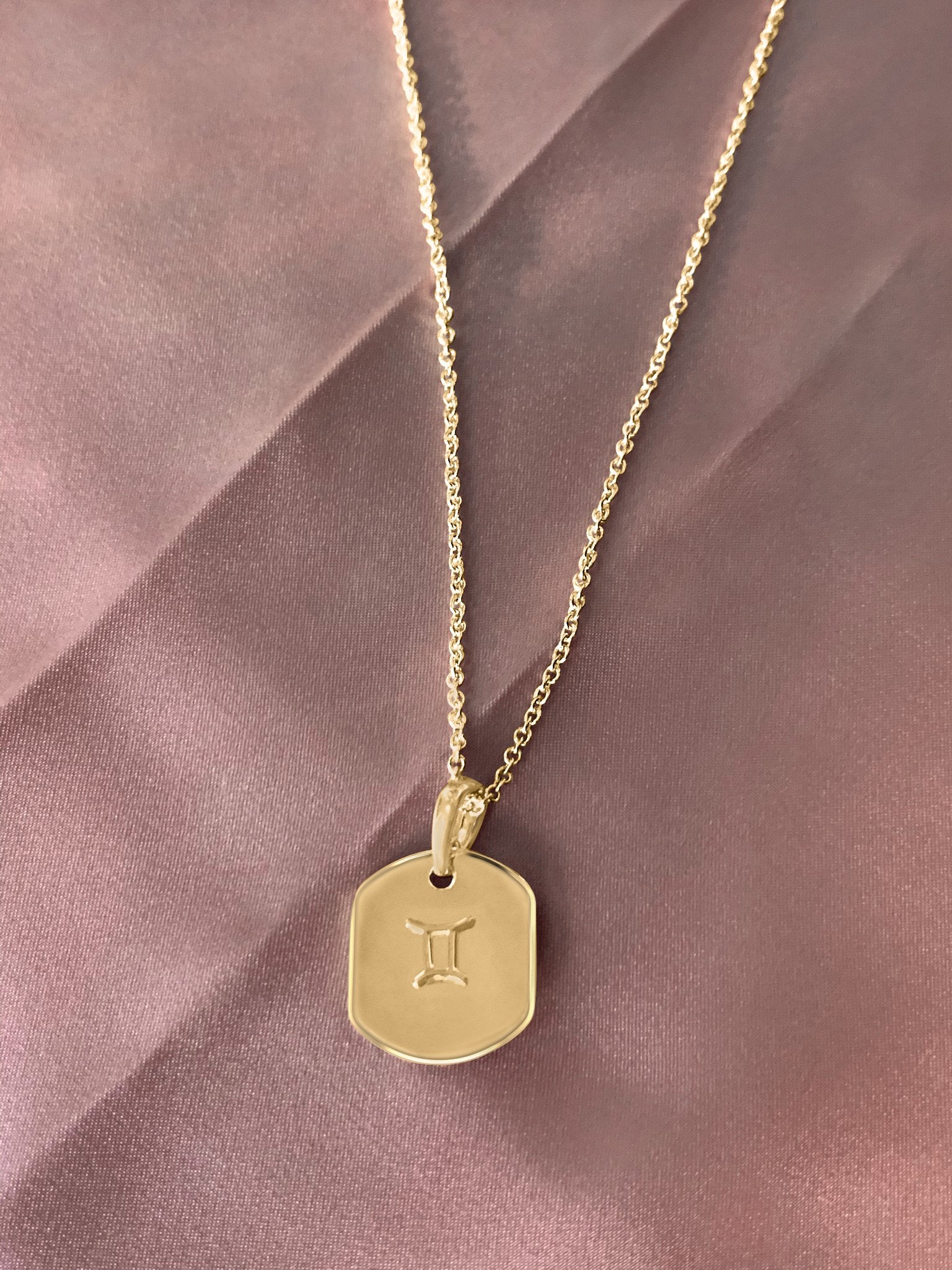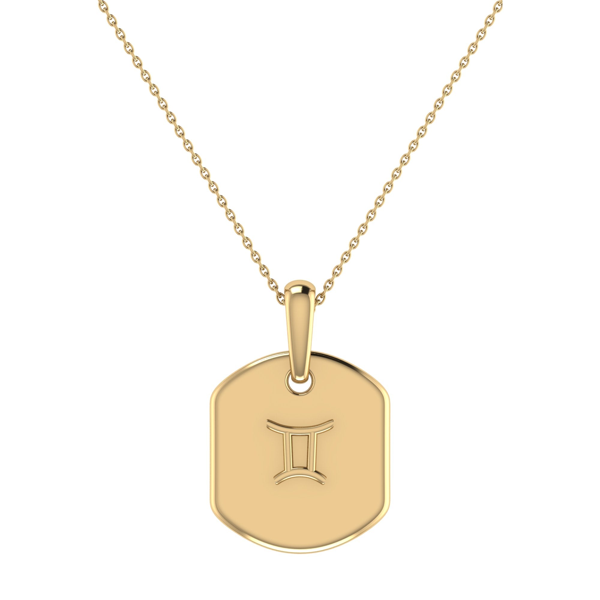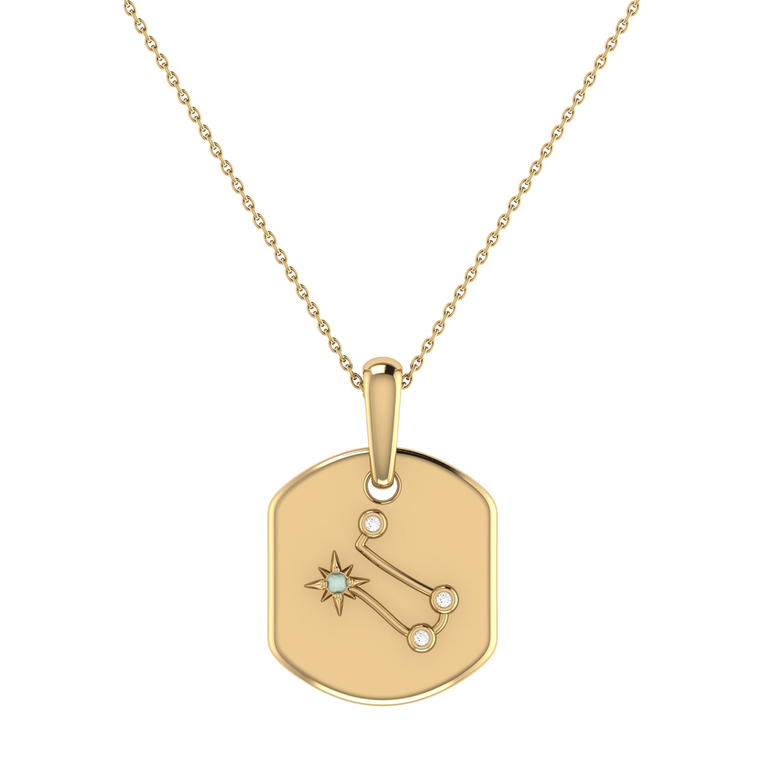 Gemini Twin Moonstone & Diamond Constellation Tag Pendant Necklace in 14K Yellow Gold Vermeil on Sterling Silver
