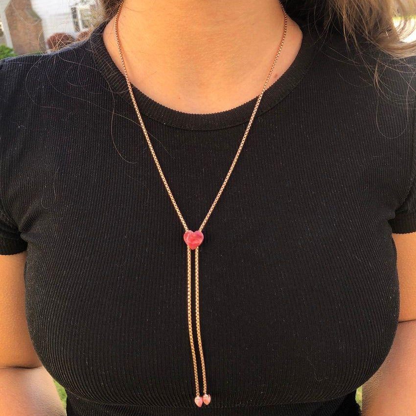 Luv Me Thulite Adjustable Heart Necklace in 14K Rose Gold Plated Sterling Silver