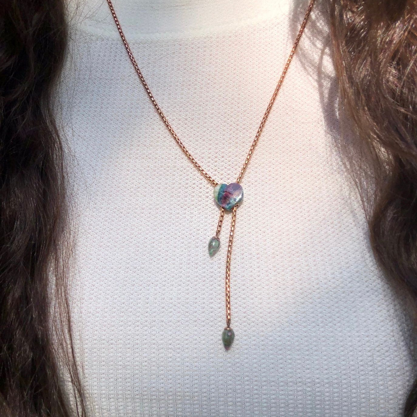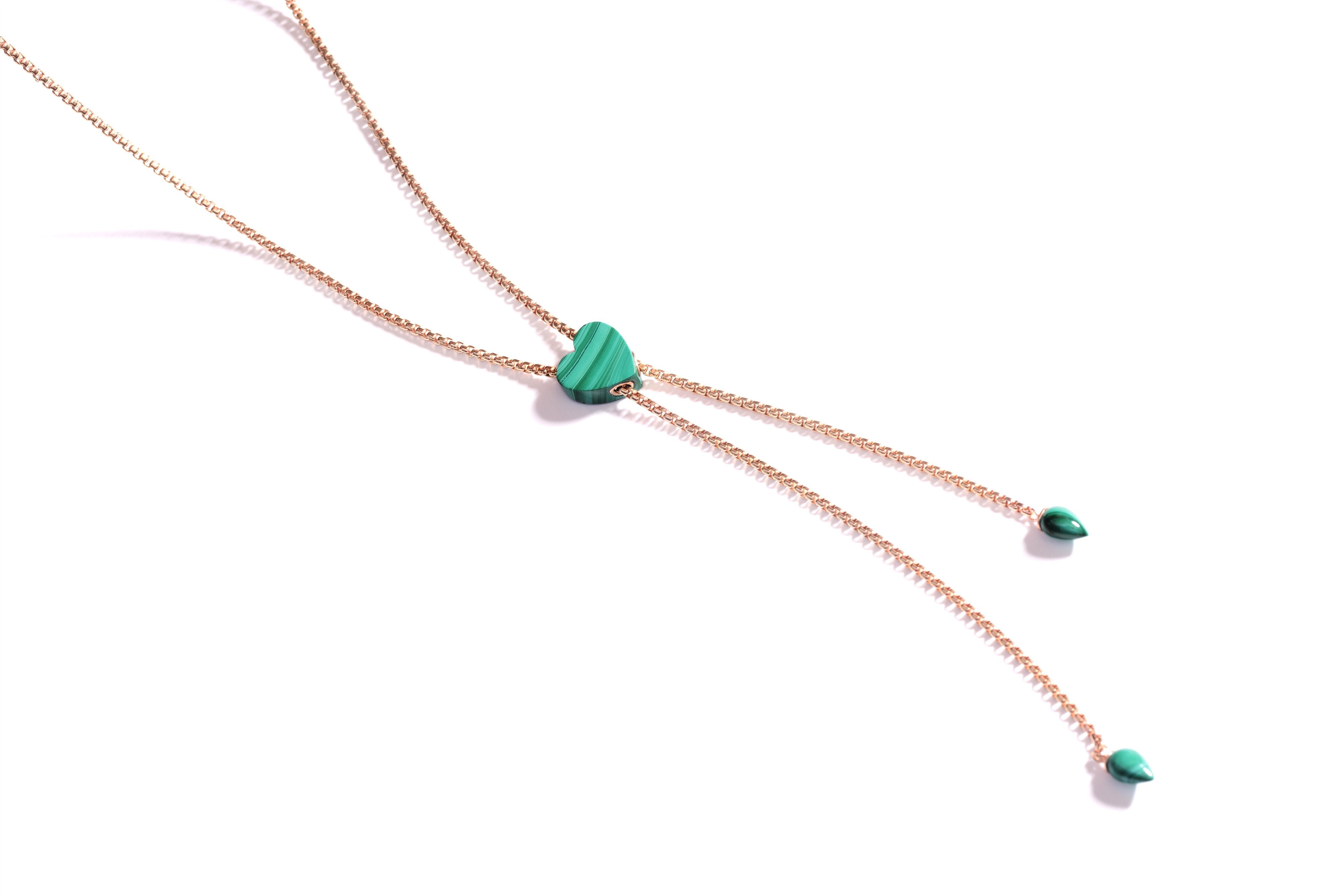 Luv Me Malachite Adjustable Heart Necklace in 14K Rose Gold Plated Sterling Silver