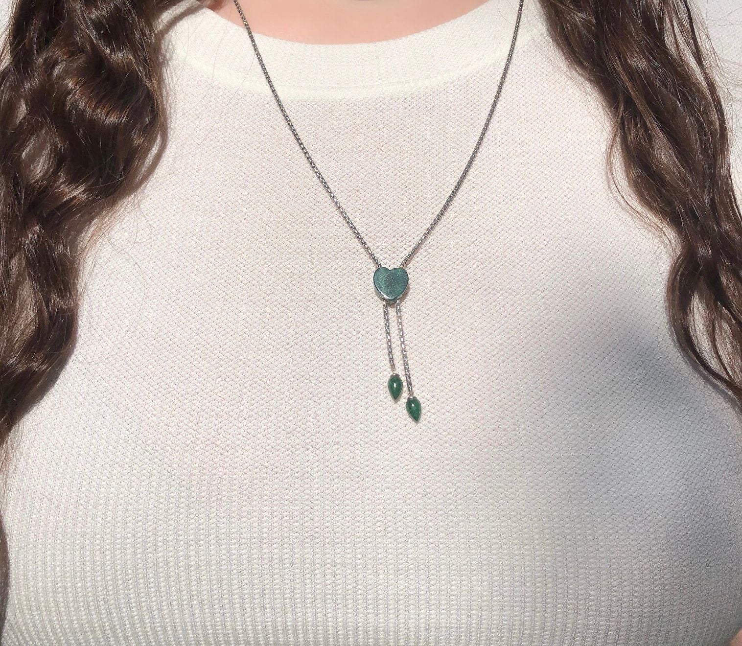 Luv Me Green Aventurine Adjustable Heart Necklace in Sterling Silver