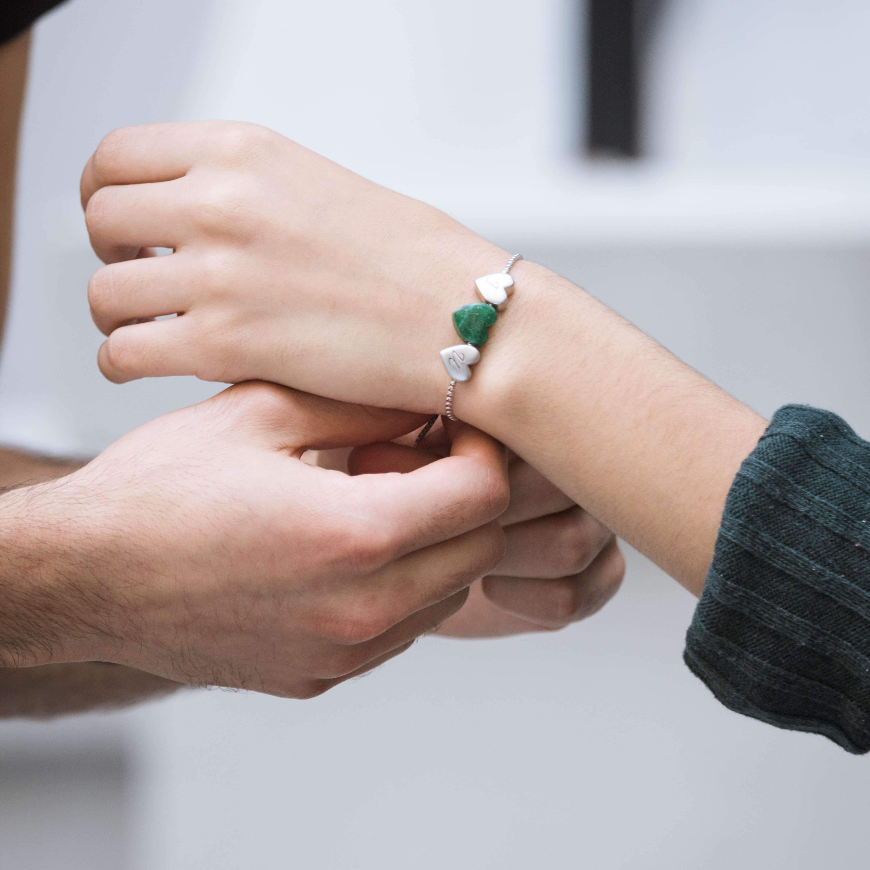 Luv Me Green Aventurine Bolo Adjustable I Love You Heart Bracelet in Sterling Silver