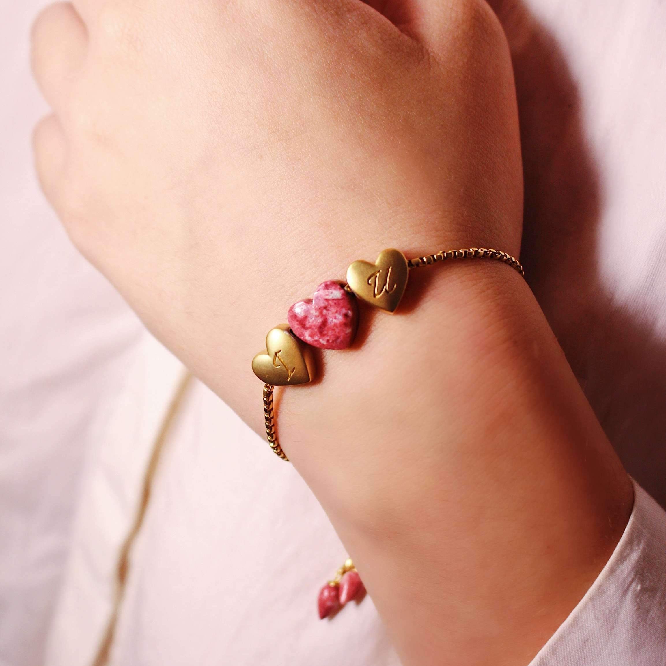 Luv Me Rhodochrosite Bolo Adjustable I Love You Heart Bracelet in 14K Yellow Gold Plated Sterling Silver