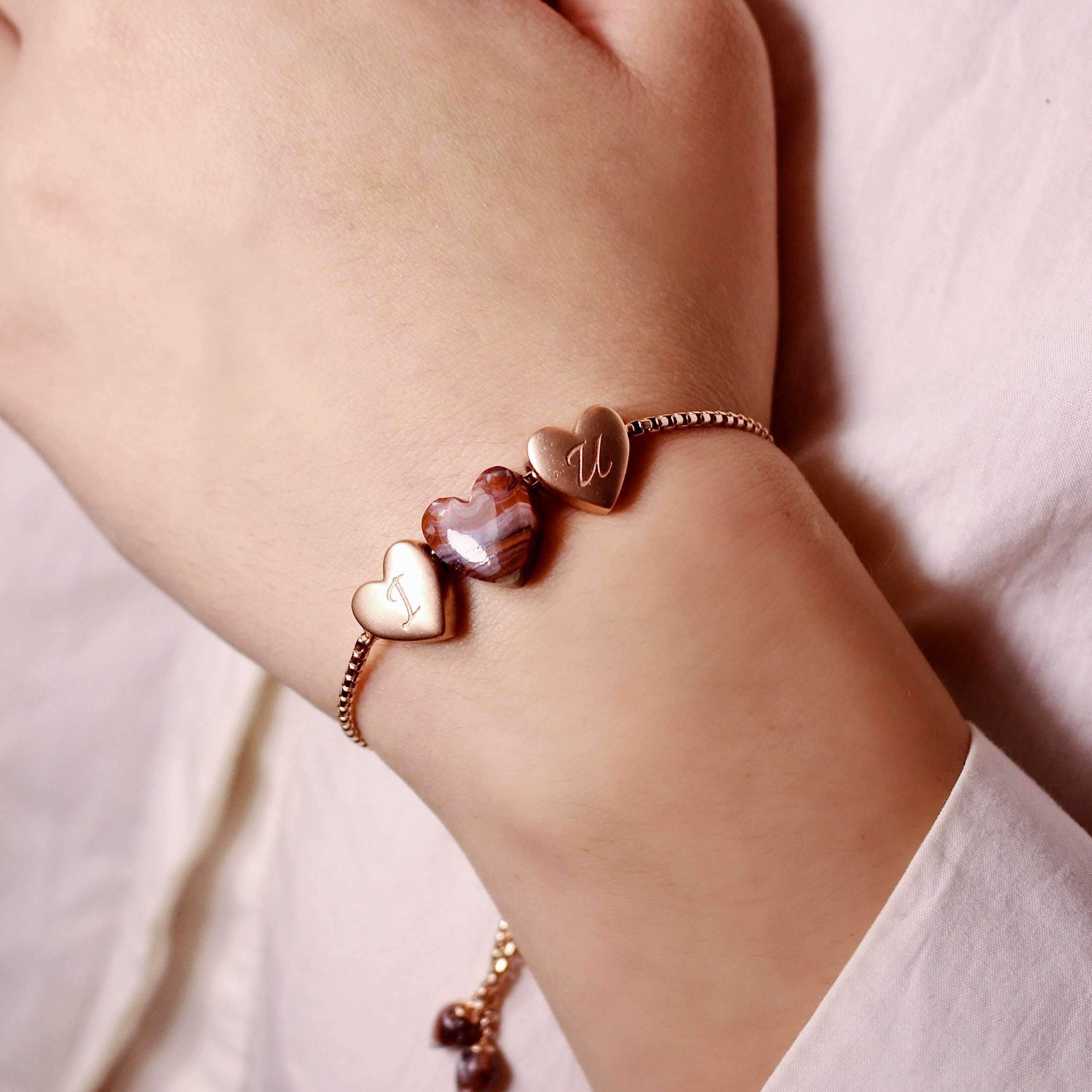 Luv Me Lace Agate Bolo Adjustable I Love You Heart Bracelet in 14K Rose Gold Plated Sterling Silver