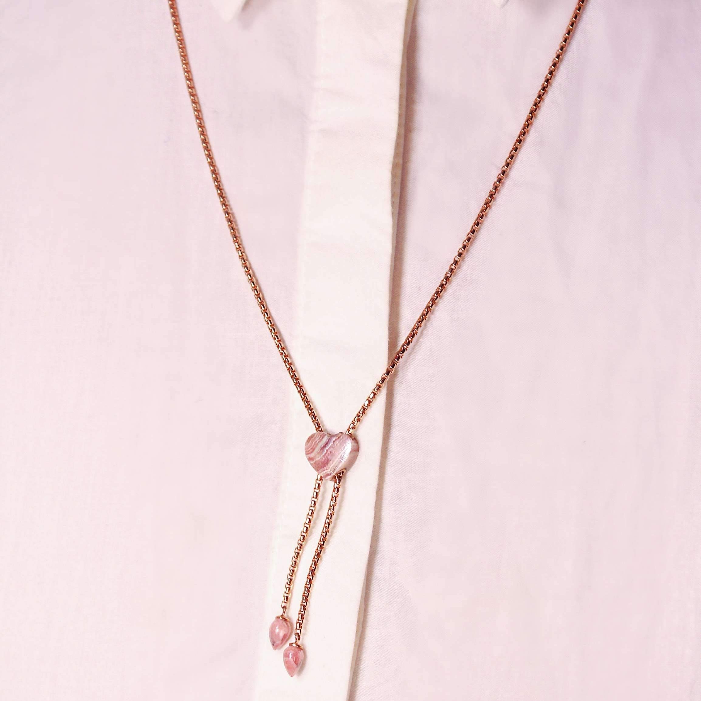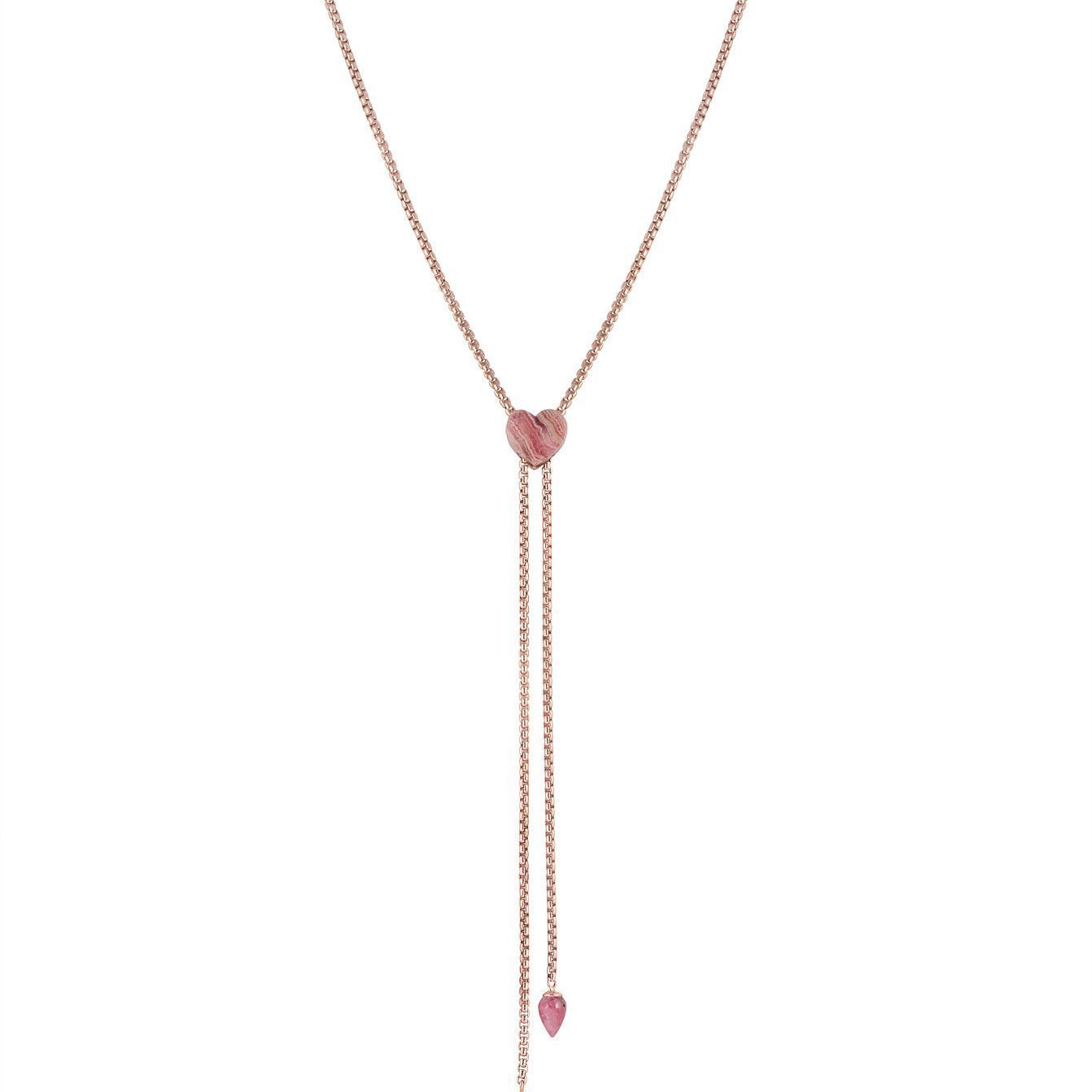 Luv Me Rhodochrosite Adjustable Heart Necklace in 14K Rose Gold Plated Sterling Silver