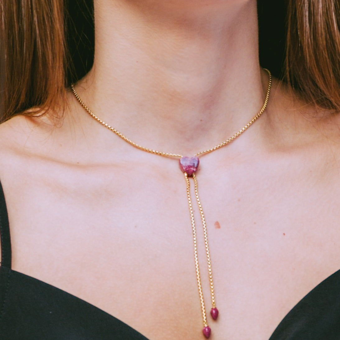 Luv Me Ruby Fuchsite Adjustable Heart Necklace in 14K Rose Gold Plated Sterling Silver