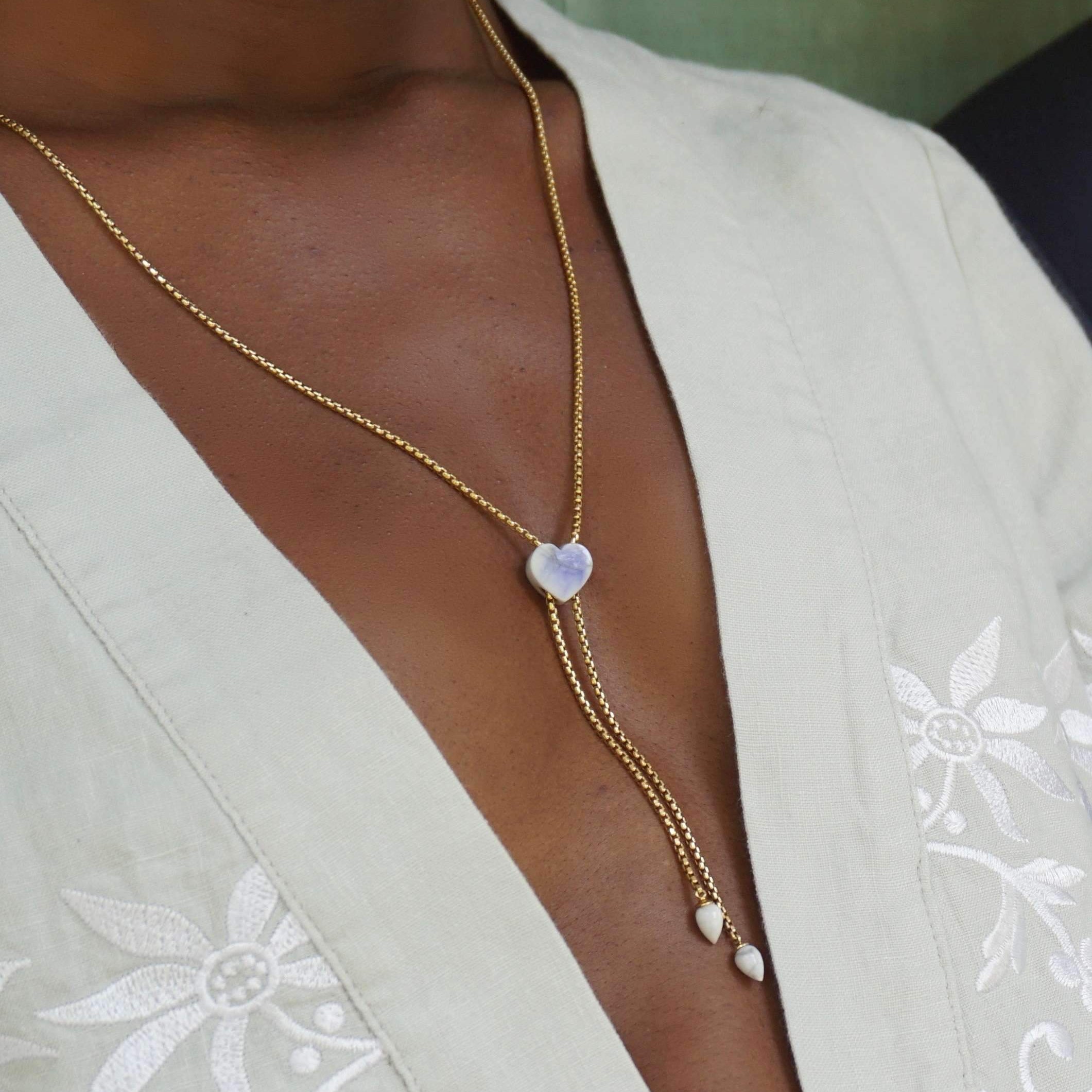 Luv Me Phosphodorite Adjustable Heart Necklace in Sterling Silver