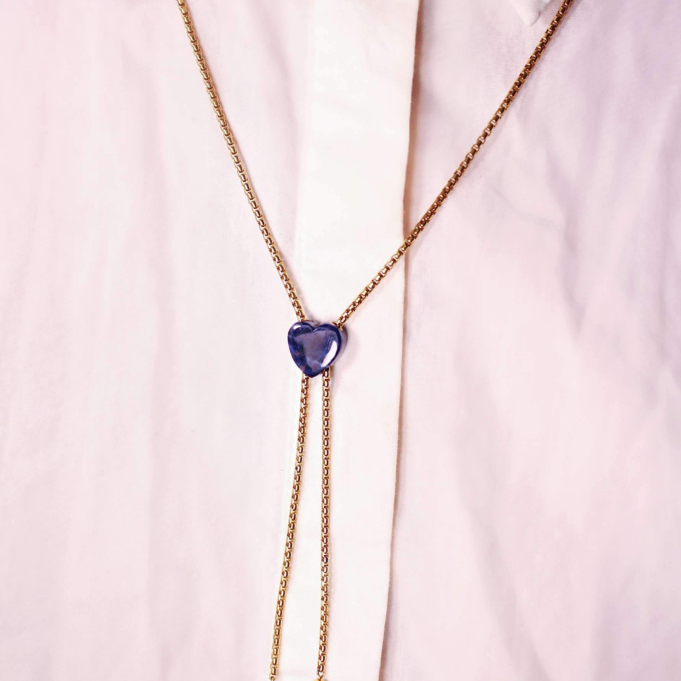 Luv Me Sodalite Adjustable Heart Necklace in 14K Yellow Gold Plated Sterling Silver