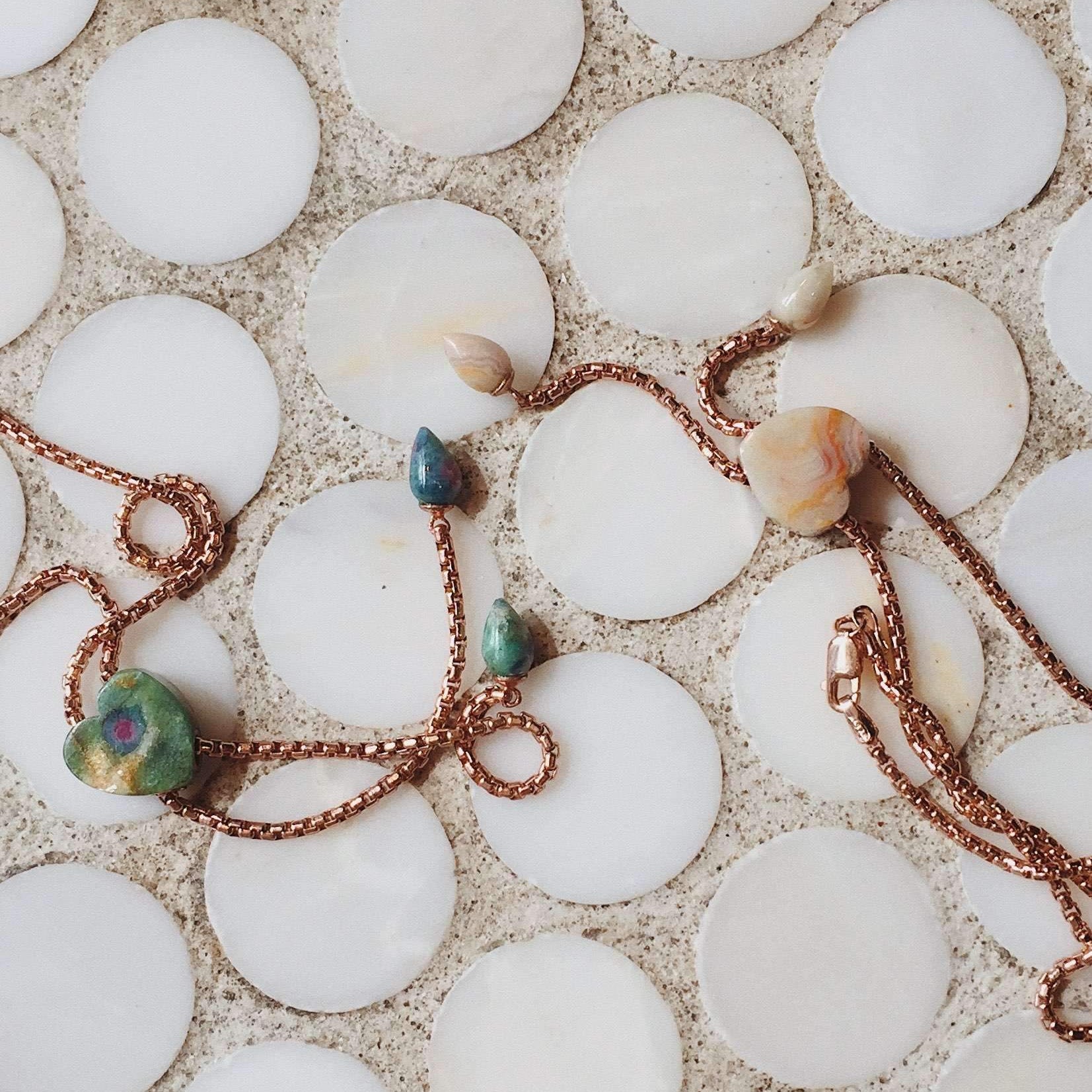 Luv Me Lace Agate Adjustable Heart Necklace in 14K Rose Gold Plated Sterling Silver