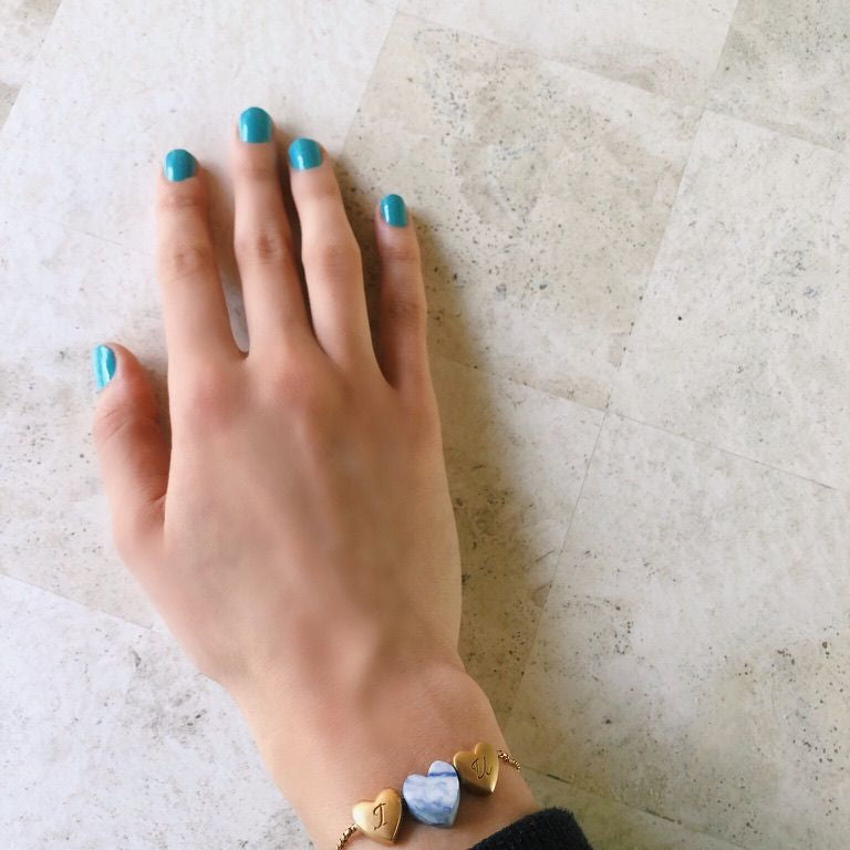 Luv Me Blue Howlite Bolo Adjustable I Love You Heart Bracelet in 14K Yellow Gold Plated Sterling Silver