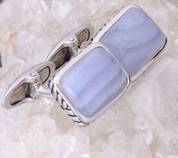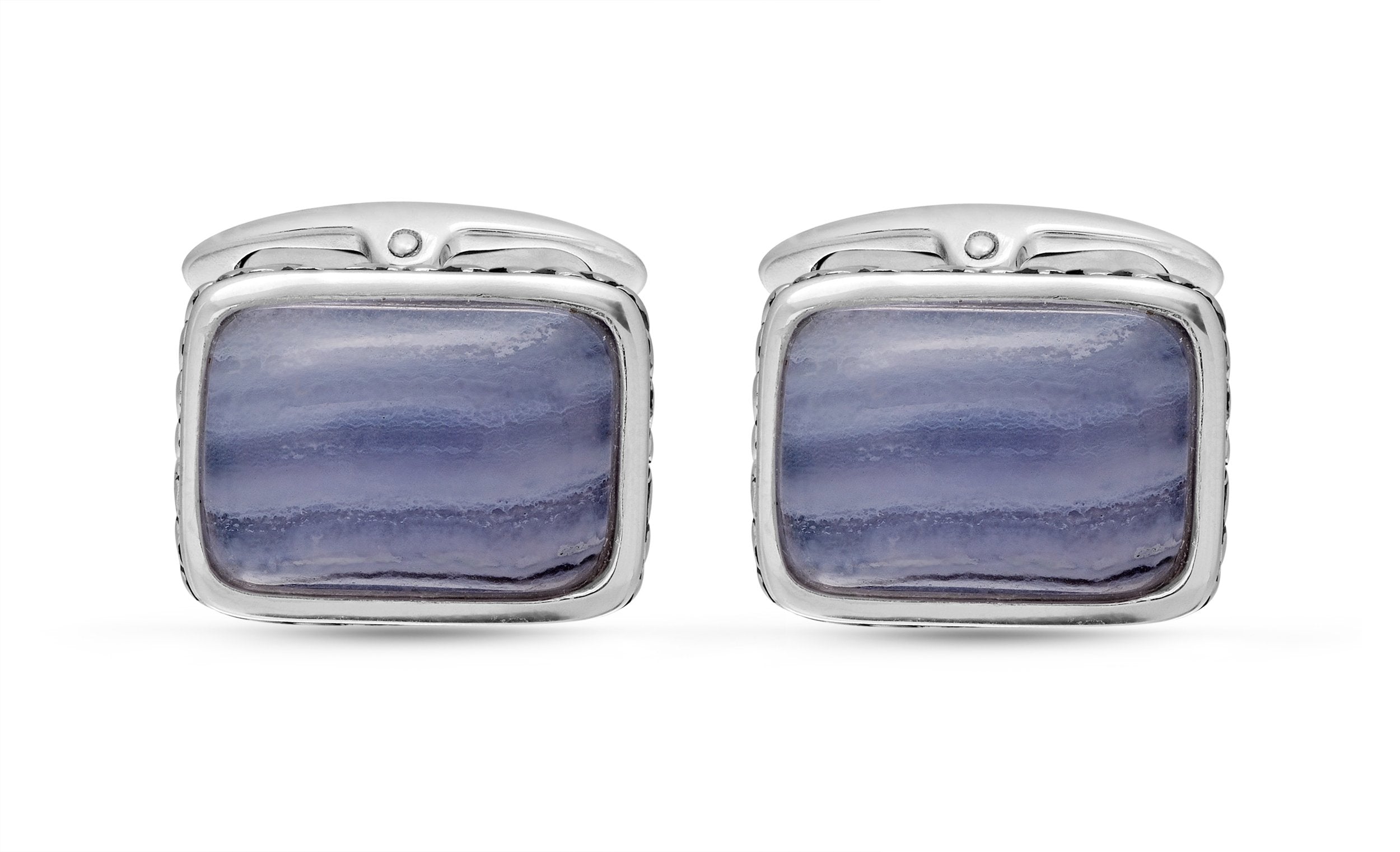 Blue Lace Agate Stone Cufflinks in Black Rhodium Plated Sterling Silver