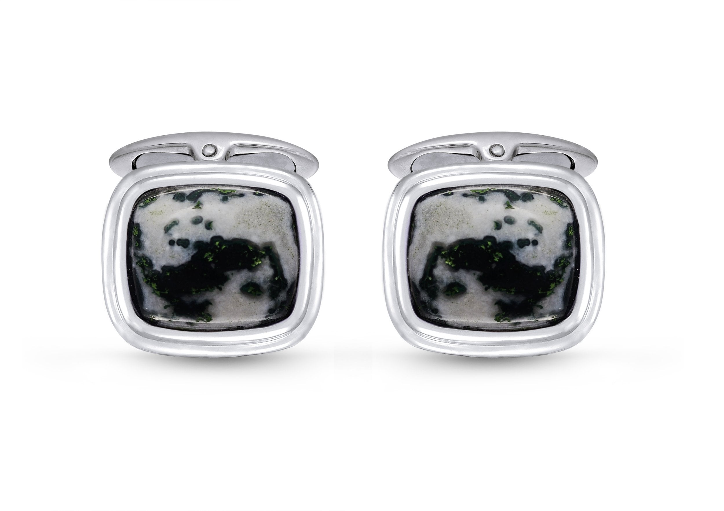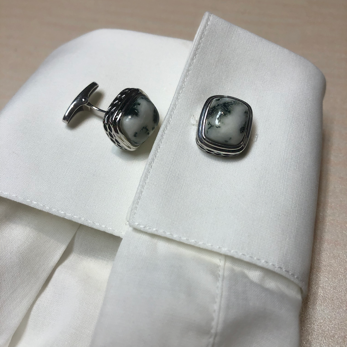 Tree Agate Stone Cufflinks in Black Rhodium Plated Sterling Silver