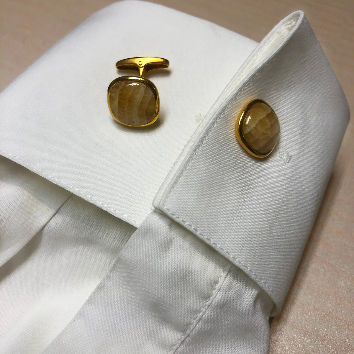 Yellow Lace Agate Stone Cufflinks in 14K Yellow Gold Plated Sterling Silver