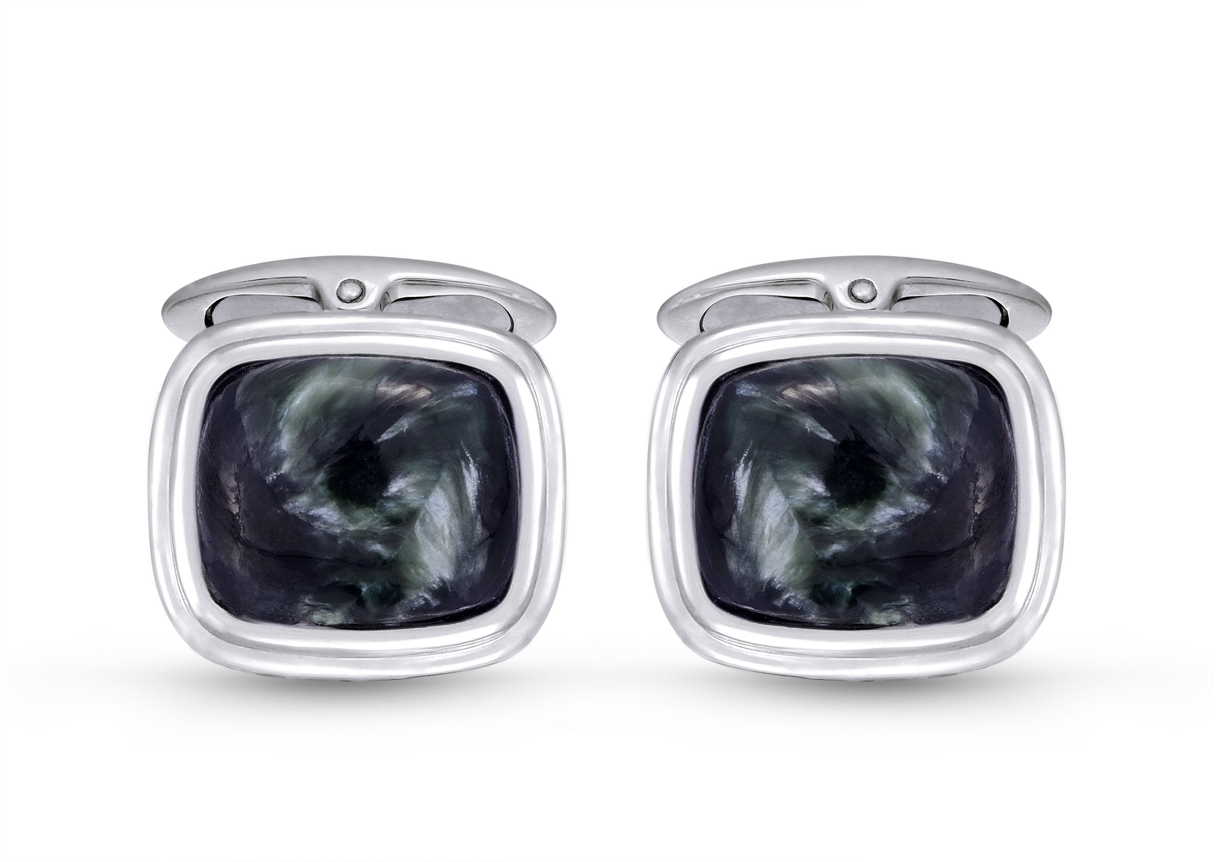 Seraphinite Stone Cufflinks in Black Rhodium Plated Sterling Silver