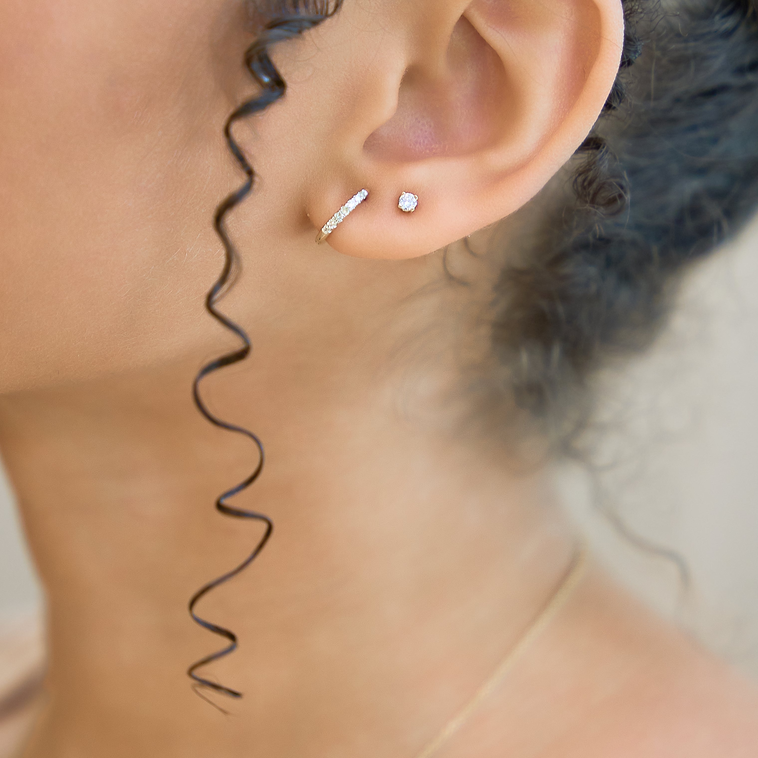 Dewdrop Cascading Diamond Huggie Hoop Earrings in 14K Yellow Gold