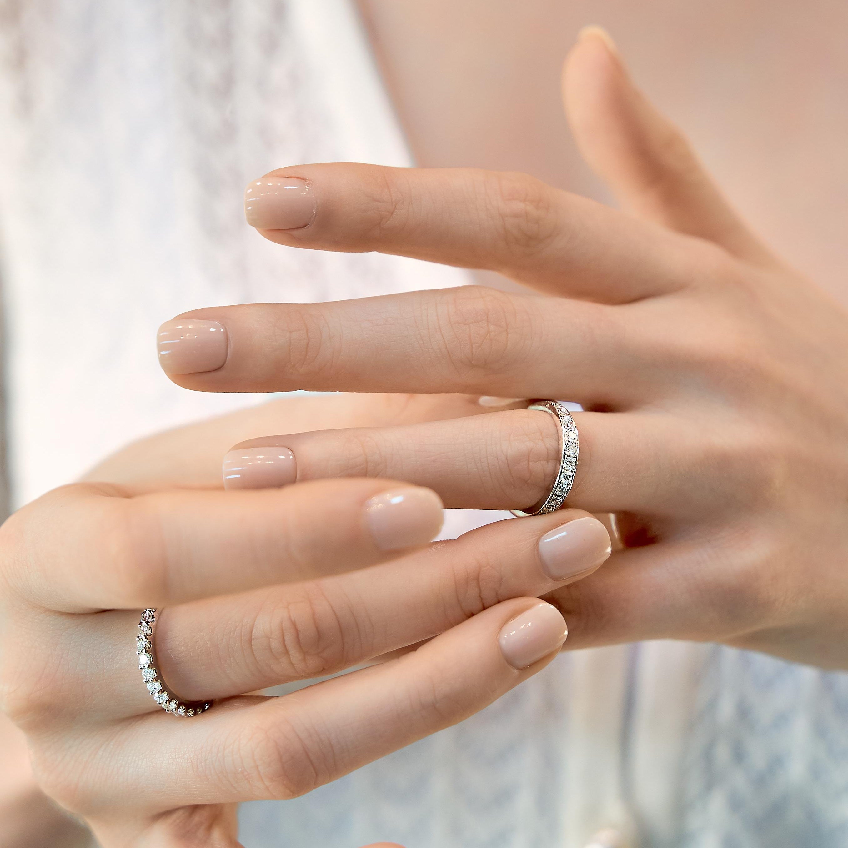 Prism 14K White Gold Round Diamond Studded Stackable Ring - 0.05cts