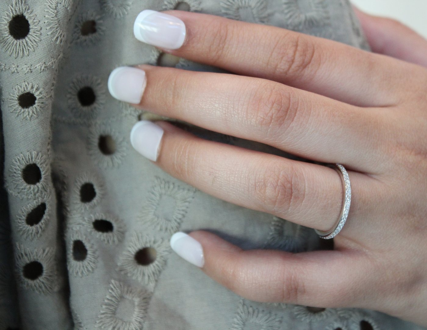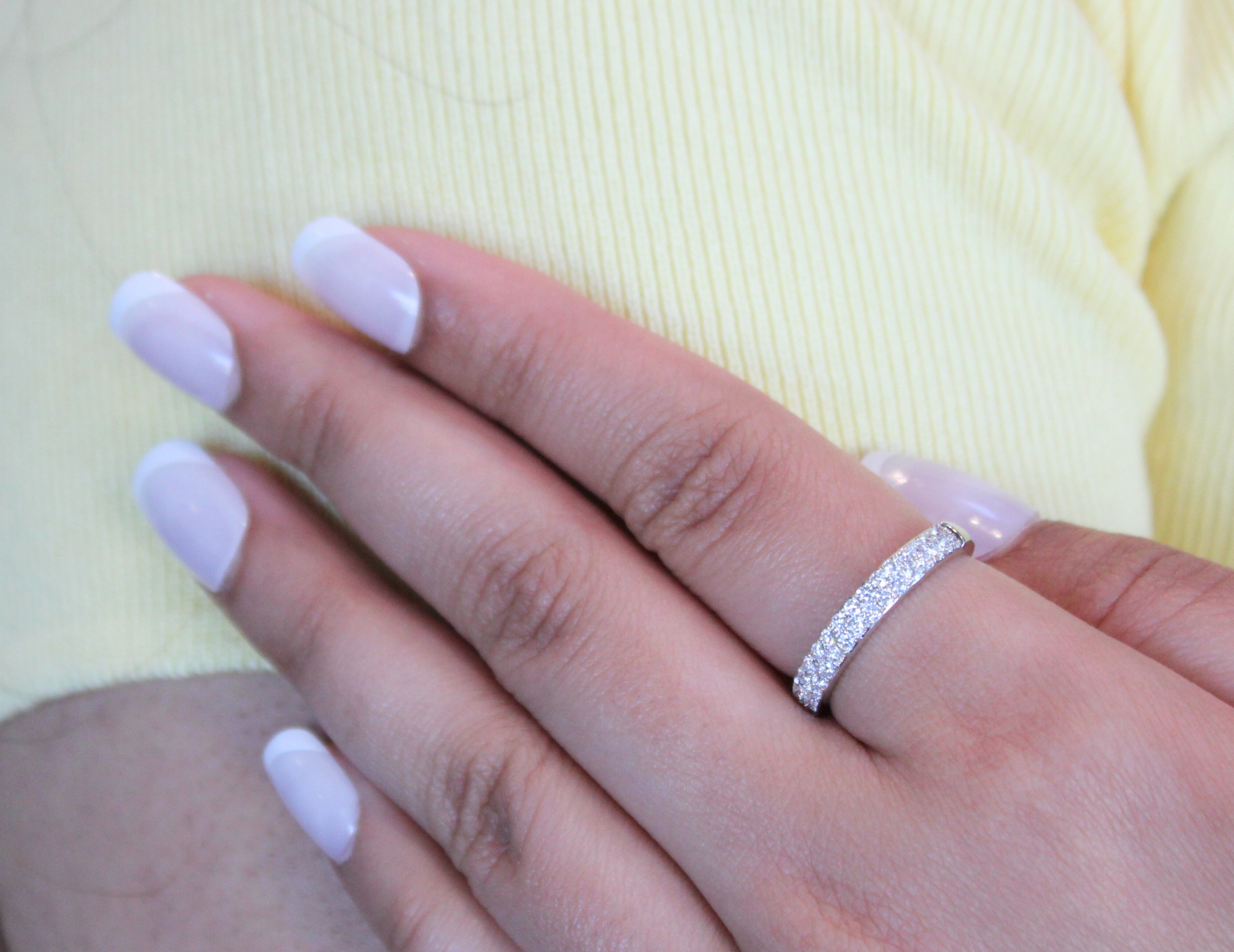Lume 14K White Gold Round Diamond Studded Band Ring - 0.97cts