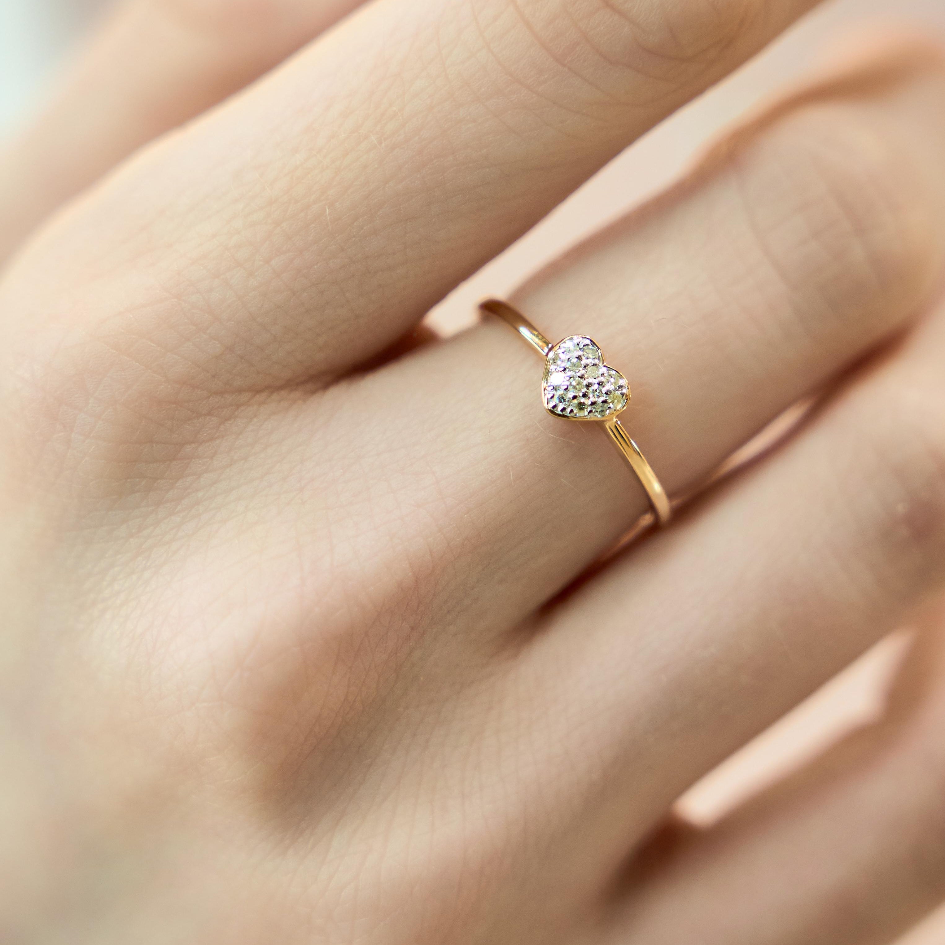 Thea Diamond Pave Heart Ring in 14K Yellow Gold - 0.09 ct