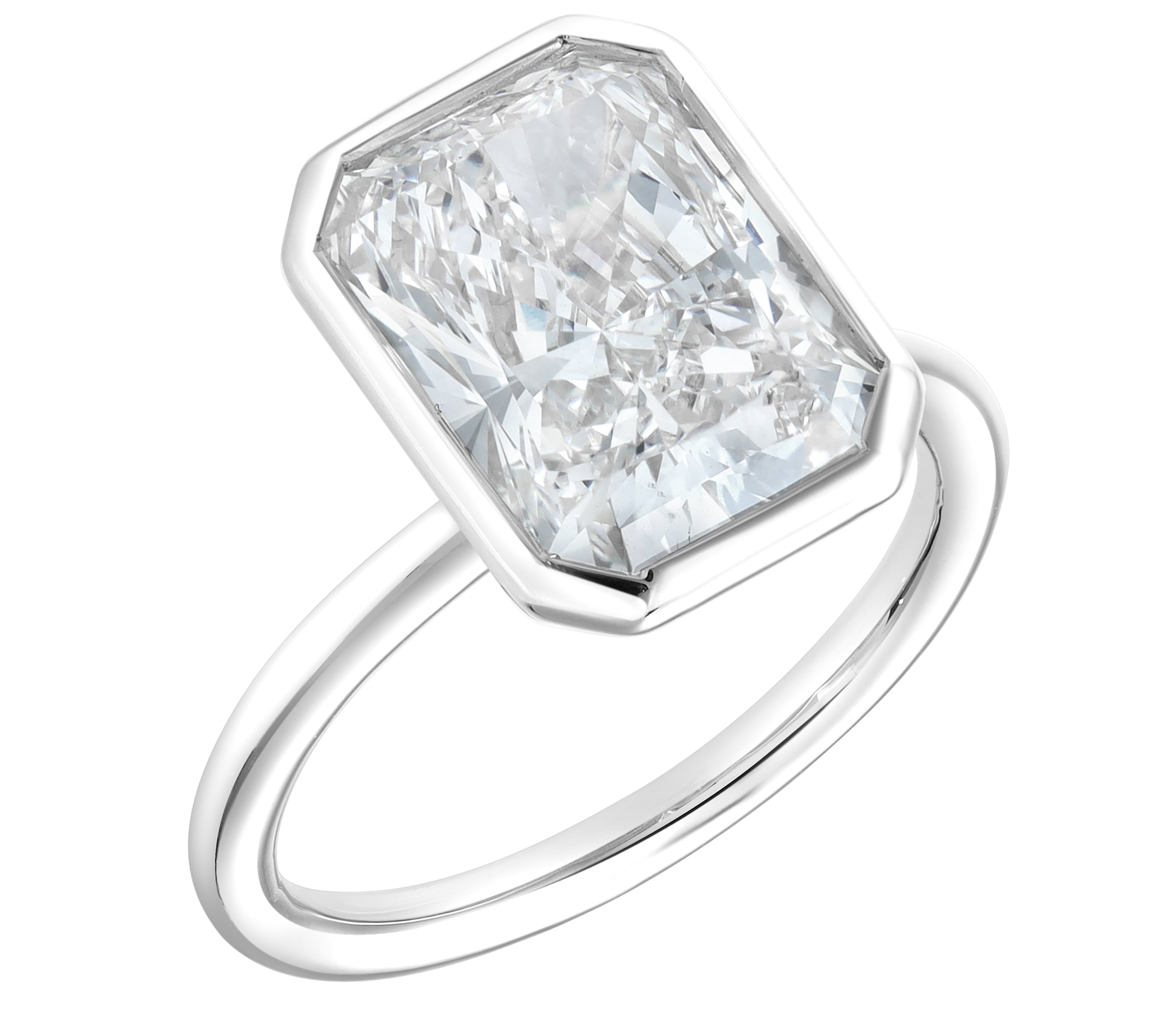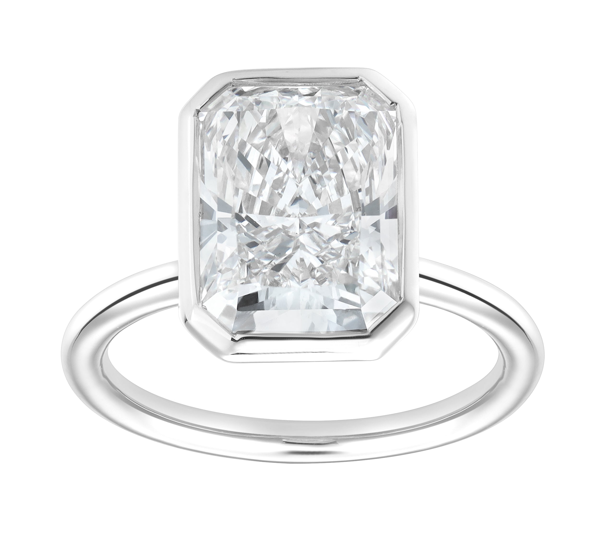 Raha 14K White Gold Radiant Bezel Lab Grown Diamond Solitaire Engagement Ring – 4 cts