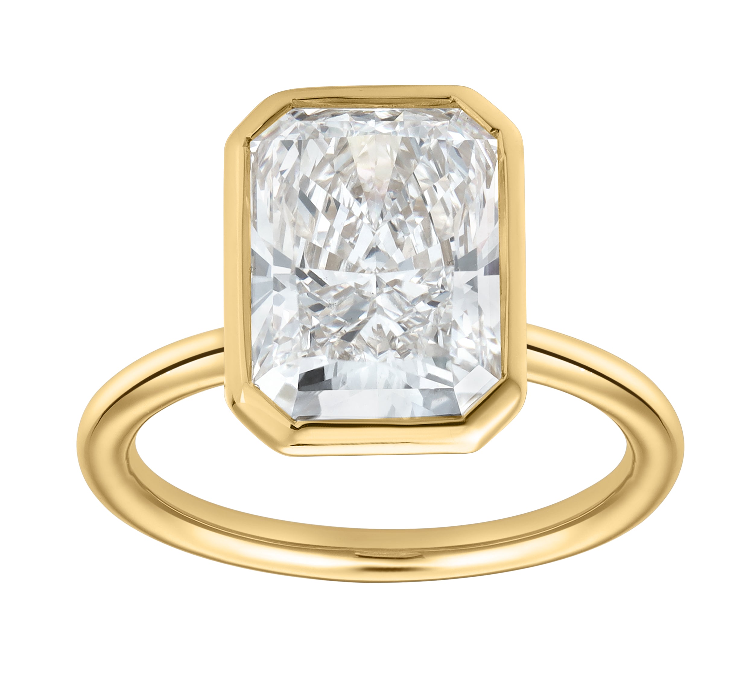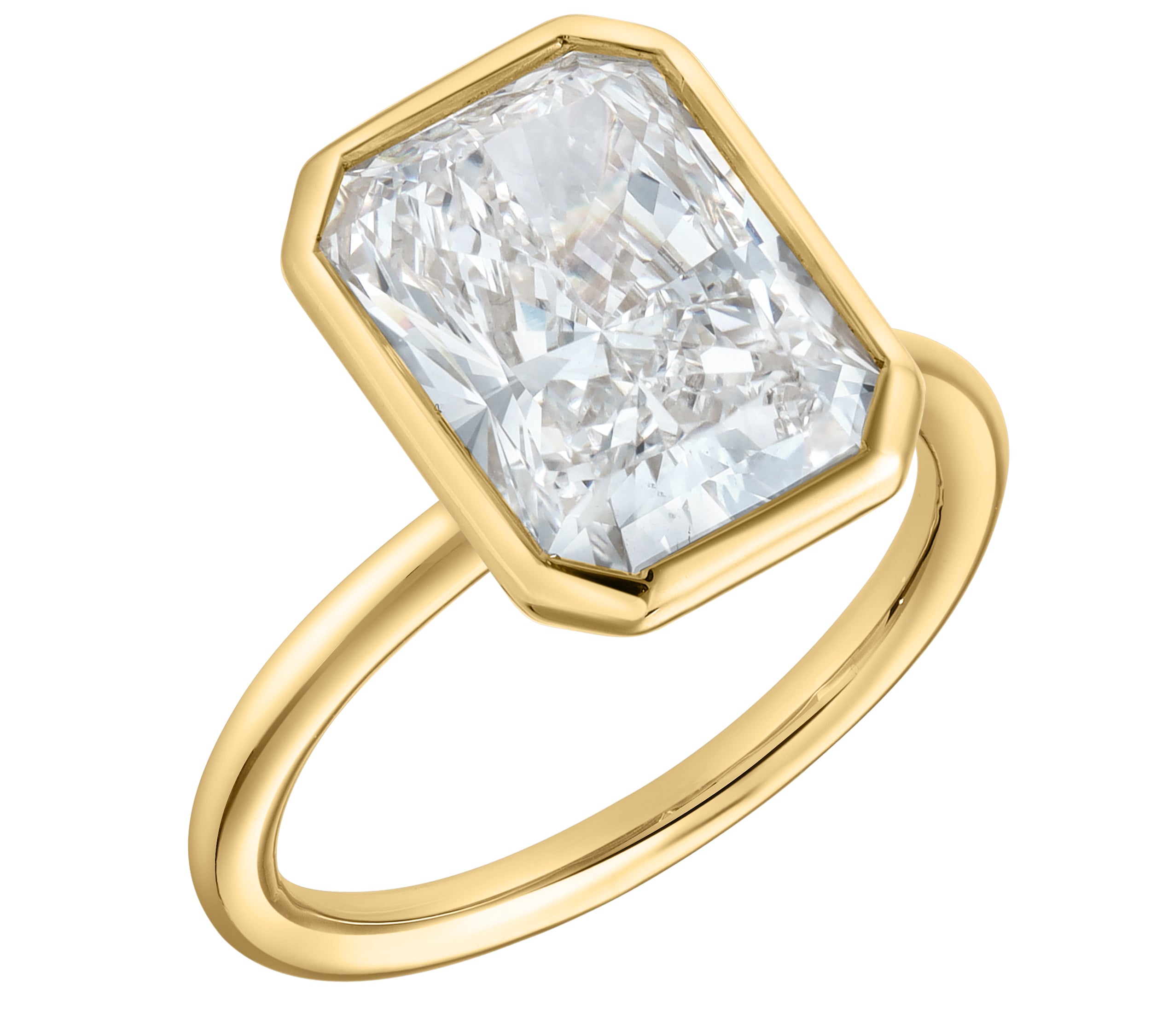 Raha 14K Yellow Gold Radiant Bezel Lab Grown Diamond Solitaire Engagement Ring – 4 cts