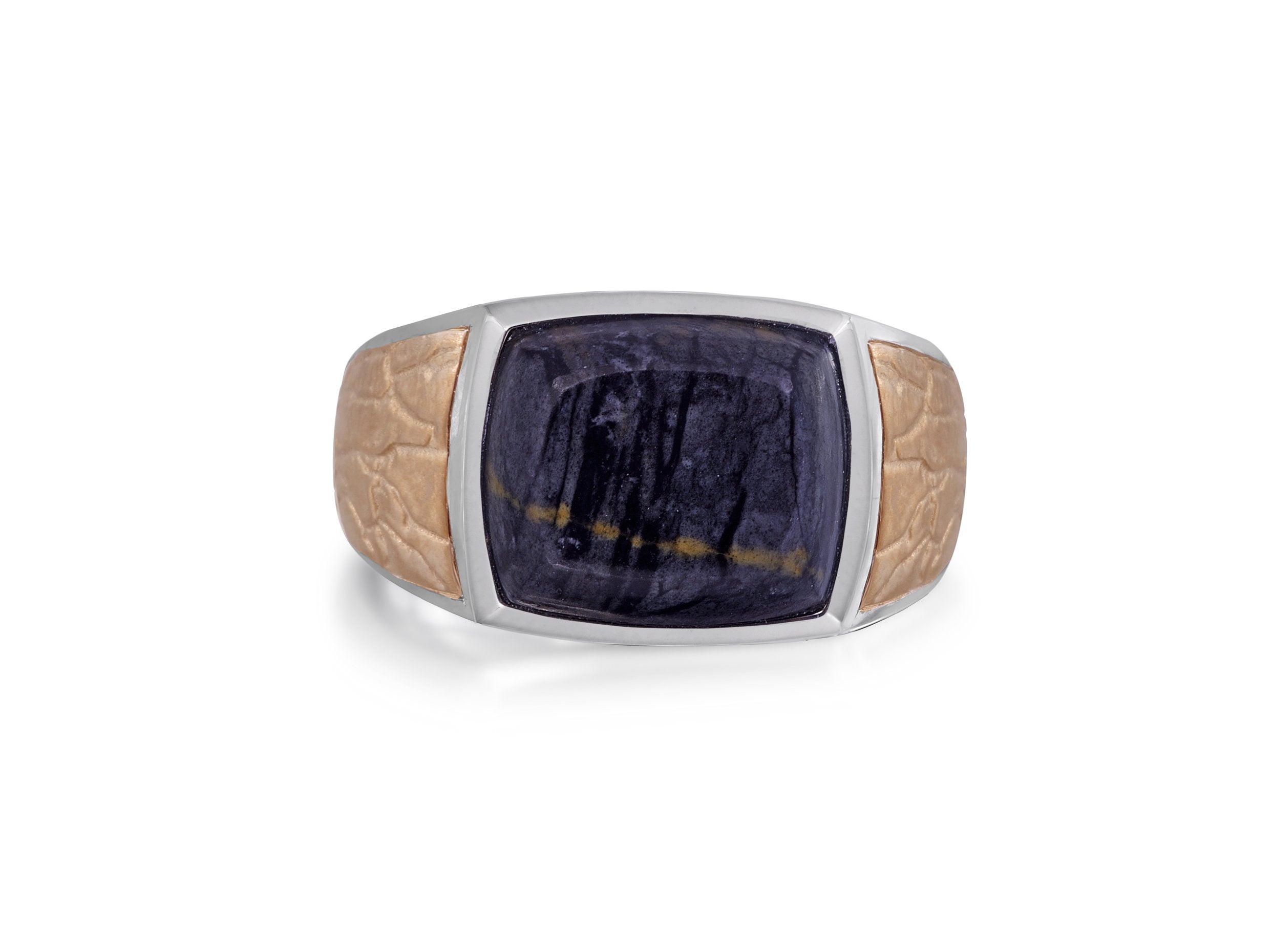 Blue Pietersite Stone Hammered Texture Signet Ring in Sterling Silver
