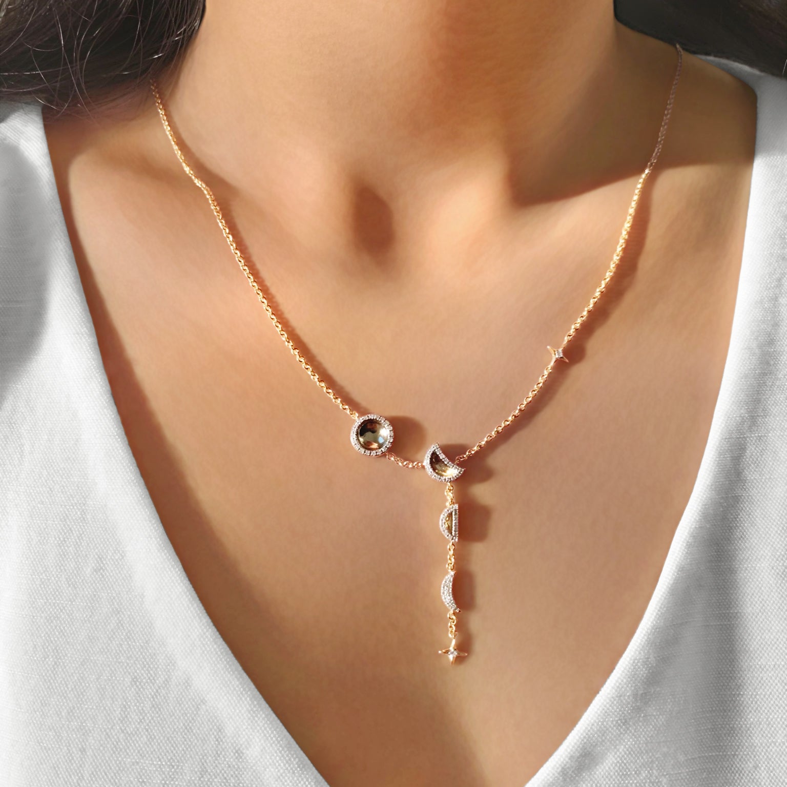 Moon Stages Diamond Y Necklace in 14K Yellow Gold Vermeil on Sterling Silver