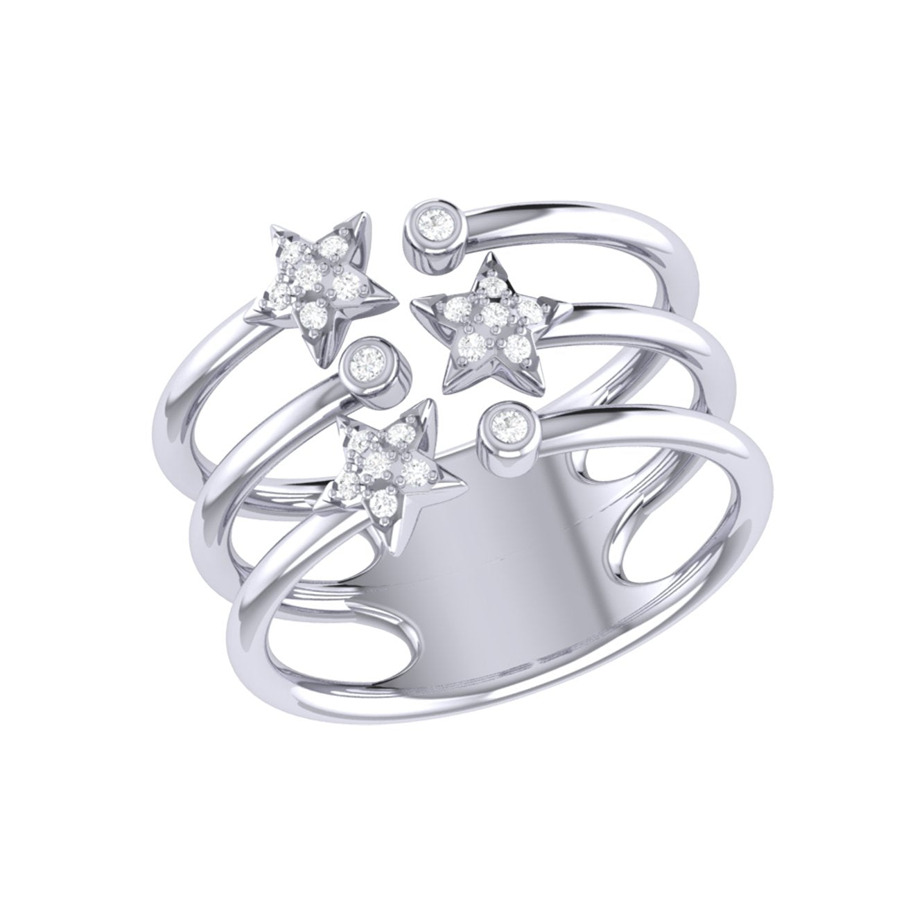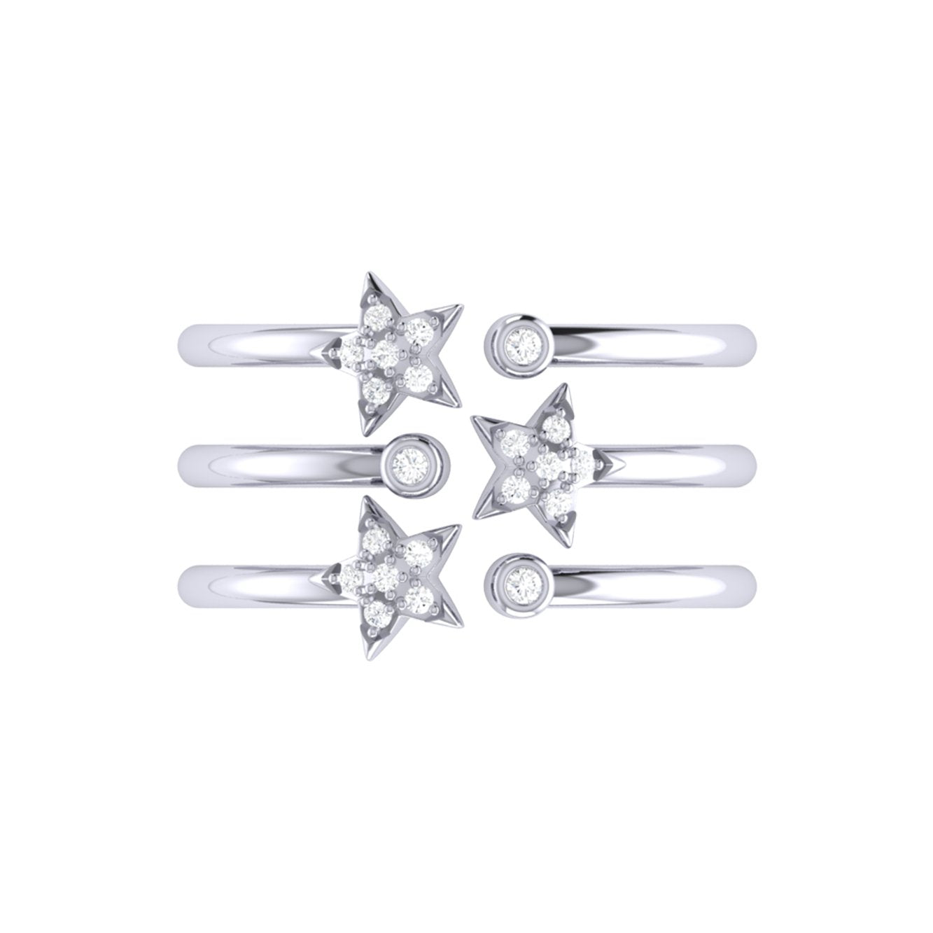 Dazzling Star Bezel Trio Diamond Ring in Sterling Silver