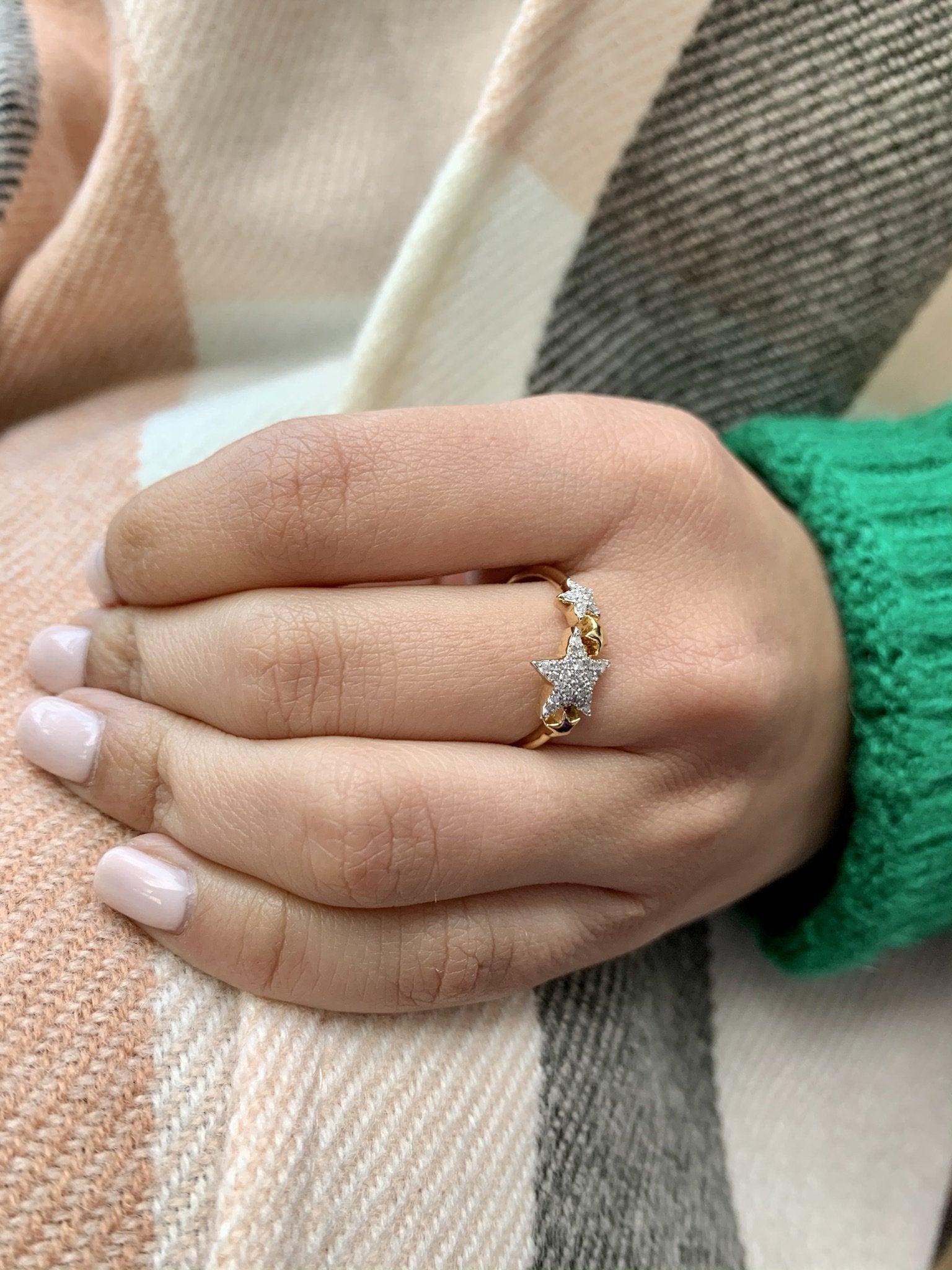 Your soul deserves to shine as bright as the Dazzling Star Cluster Ring. Crafted in 14K Yellow Gold, this ring features 100% natural, genuine diamonds. 0.14 carats of diamonds are used in a micro pave setting. This ring is offered in custom sizes. The ring thickness ranges from 2.8mm to 9.8mm.