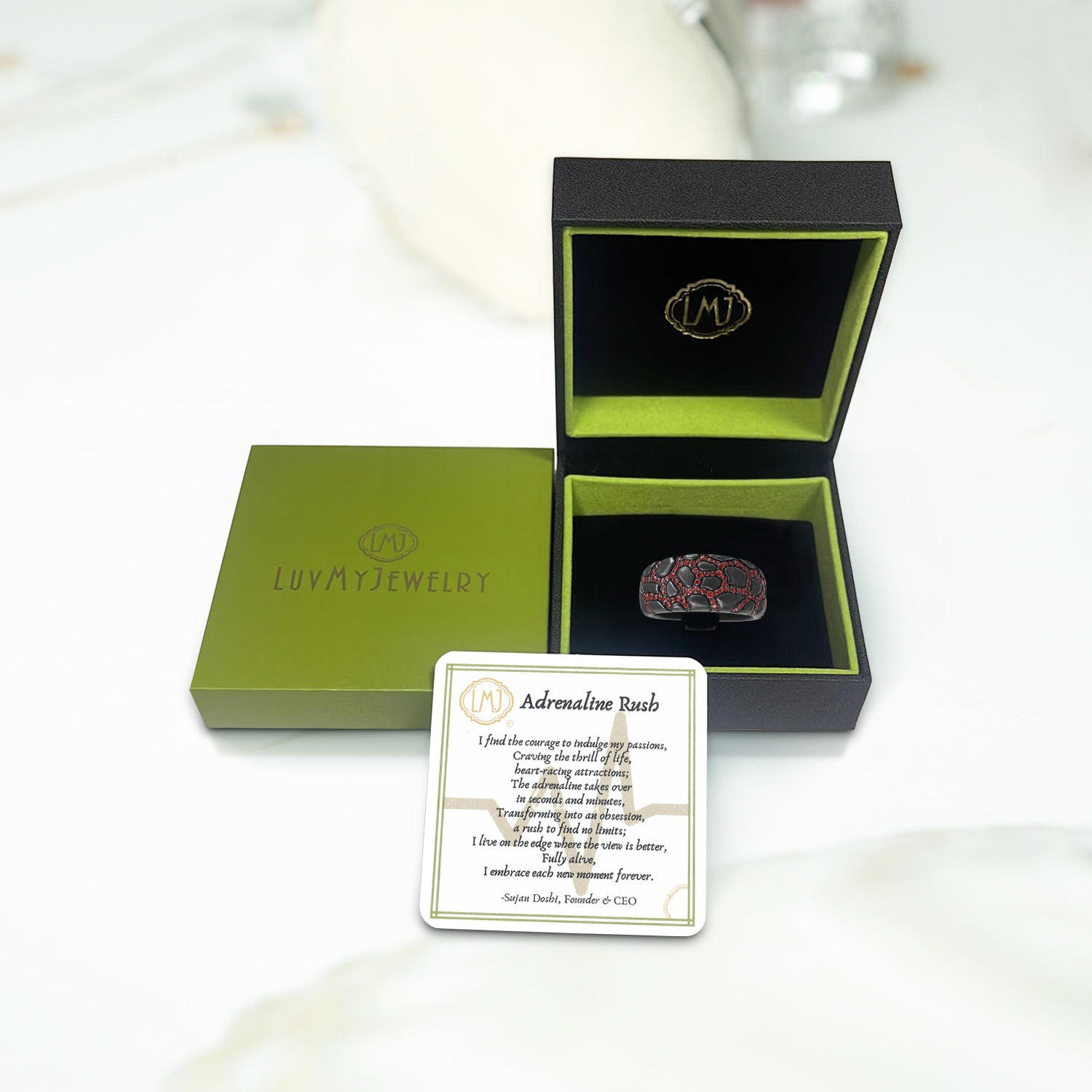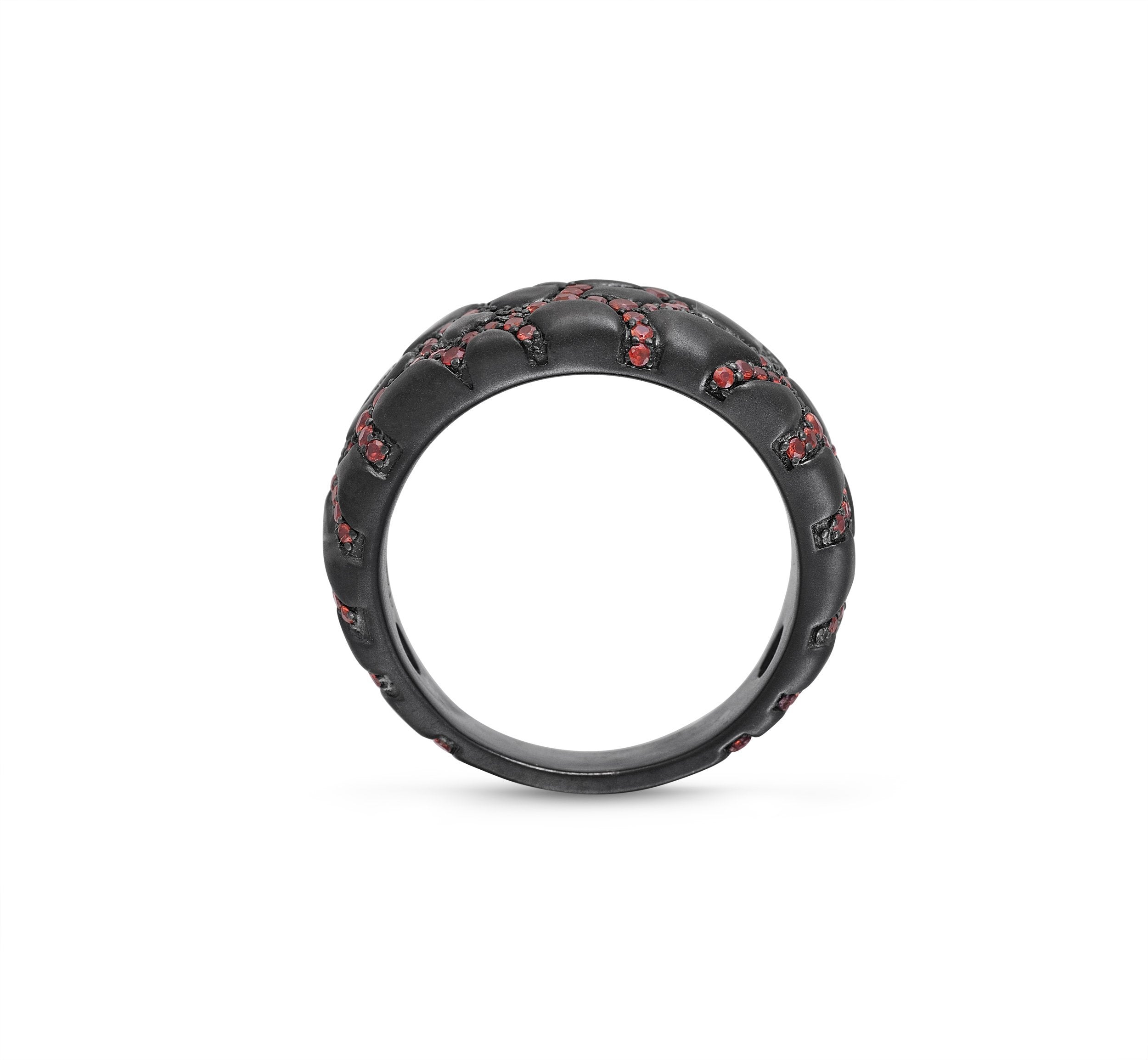 Fiery Ascent Black Rhodium Plated Sterling Silver Textured Band Ring with Garnets