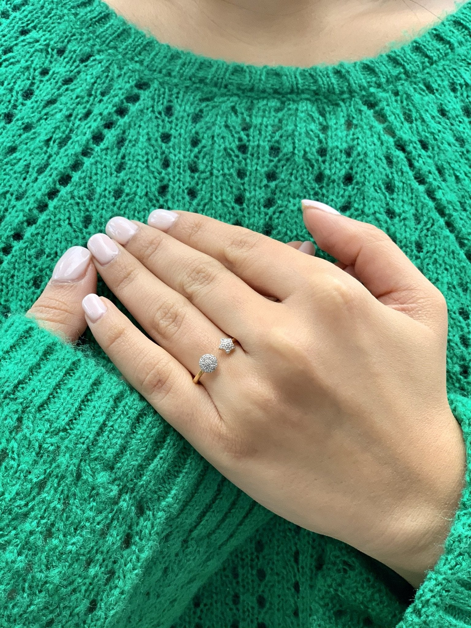 Full Moon Star Diamond Open Ring in 14K Yellow Gold