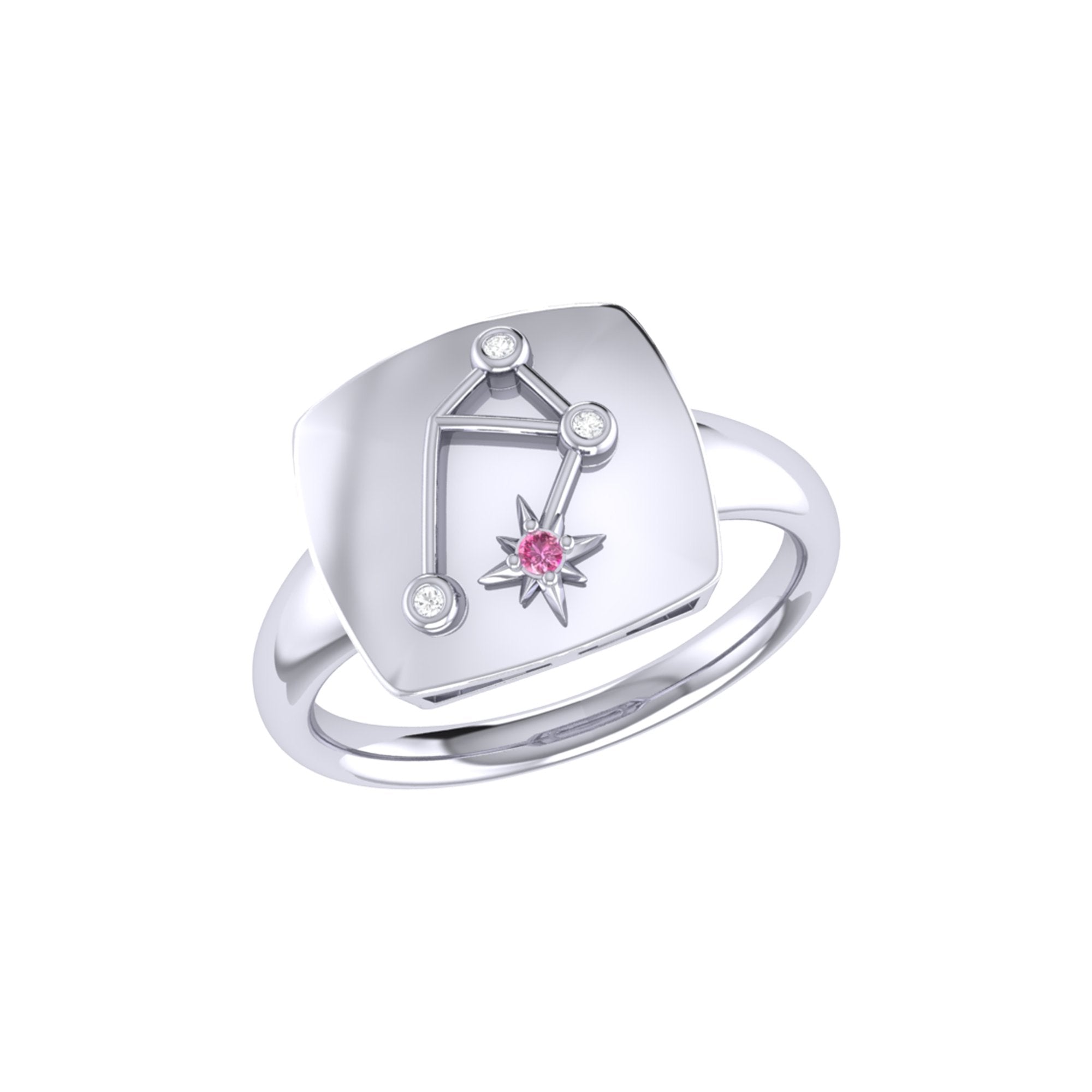 Libra Scales Pink Tourmaline & Diamond Constellation Signet Ring in 14K White Gold