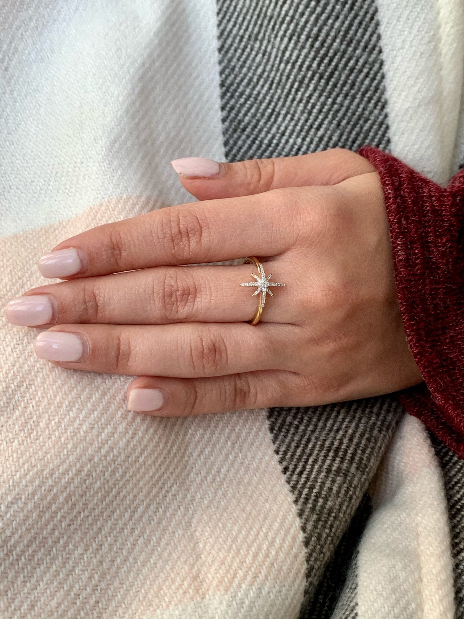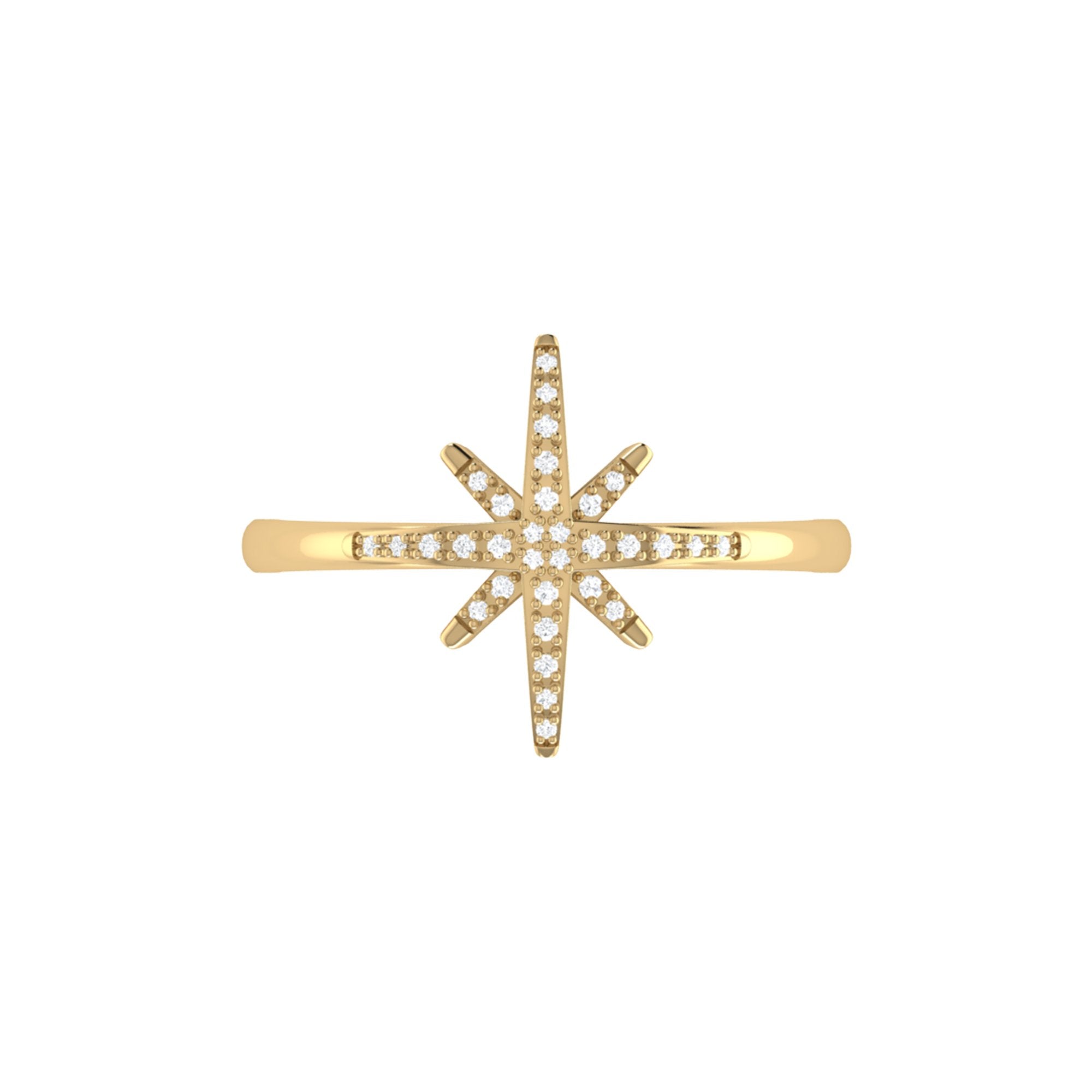 Treat your conscience with love and forgiveness with our North Star Ring. Crafted in 14K Yellow Gold, this ring features 100% natural, genuine diamonds. 0.08 carats of diamonds are used in an individual plate prong setting. This ring is offered in custom sizes. The ring thickness ranges from 2.1 mm to 18 mm.