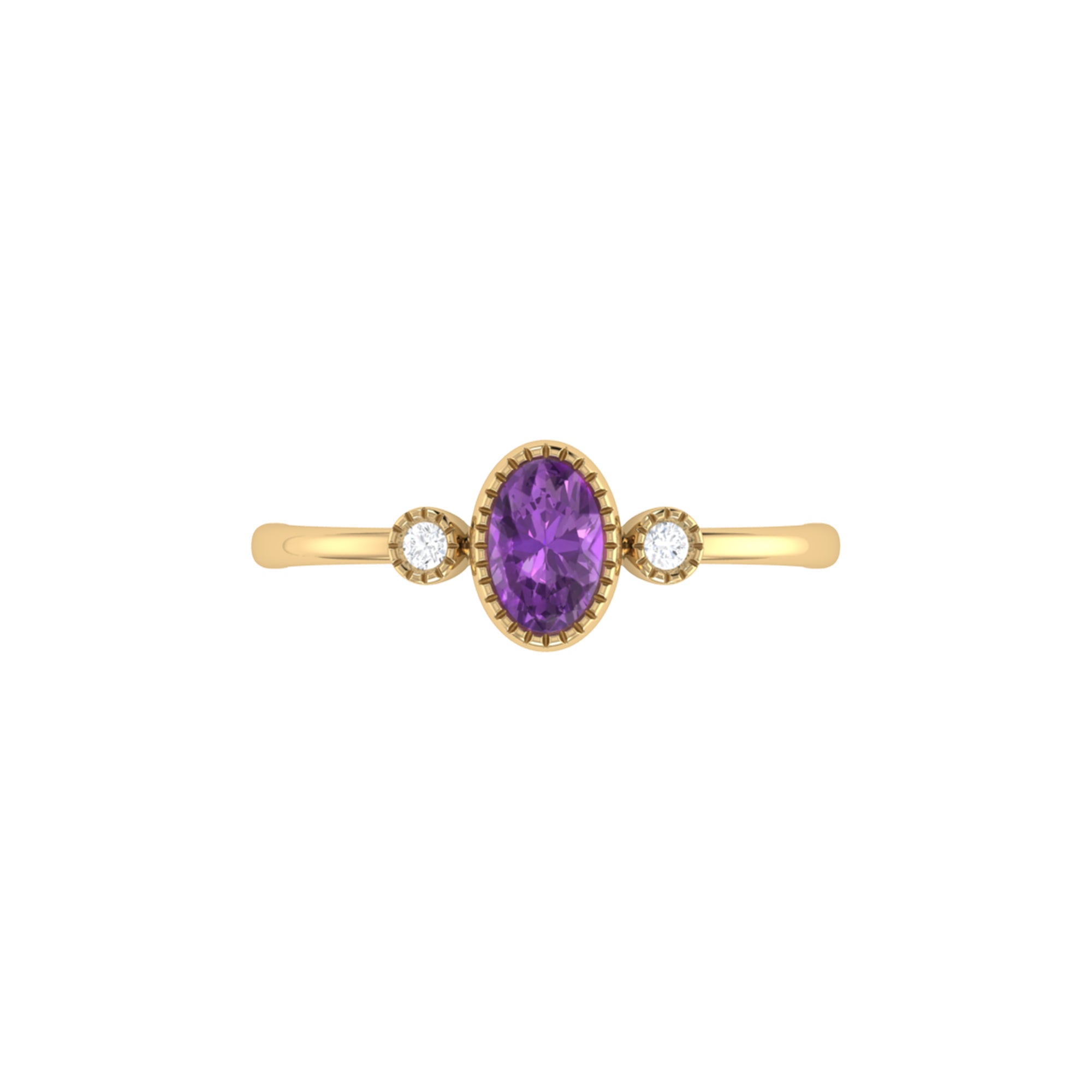 Oval Cut Amethyst & Diamond Birthstone Ring in 14K Yellow Gold