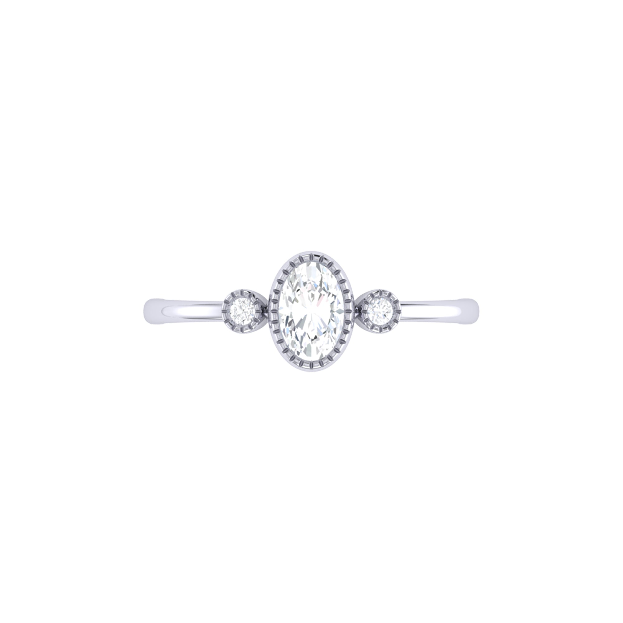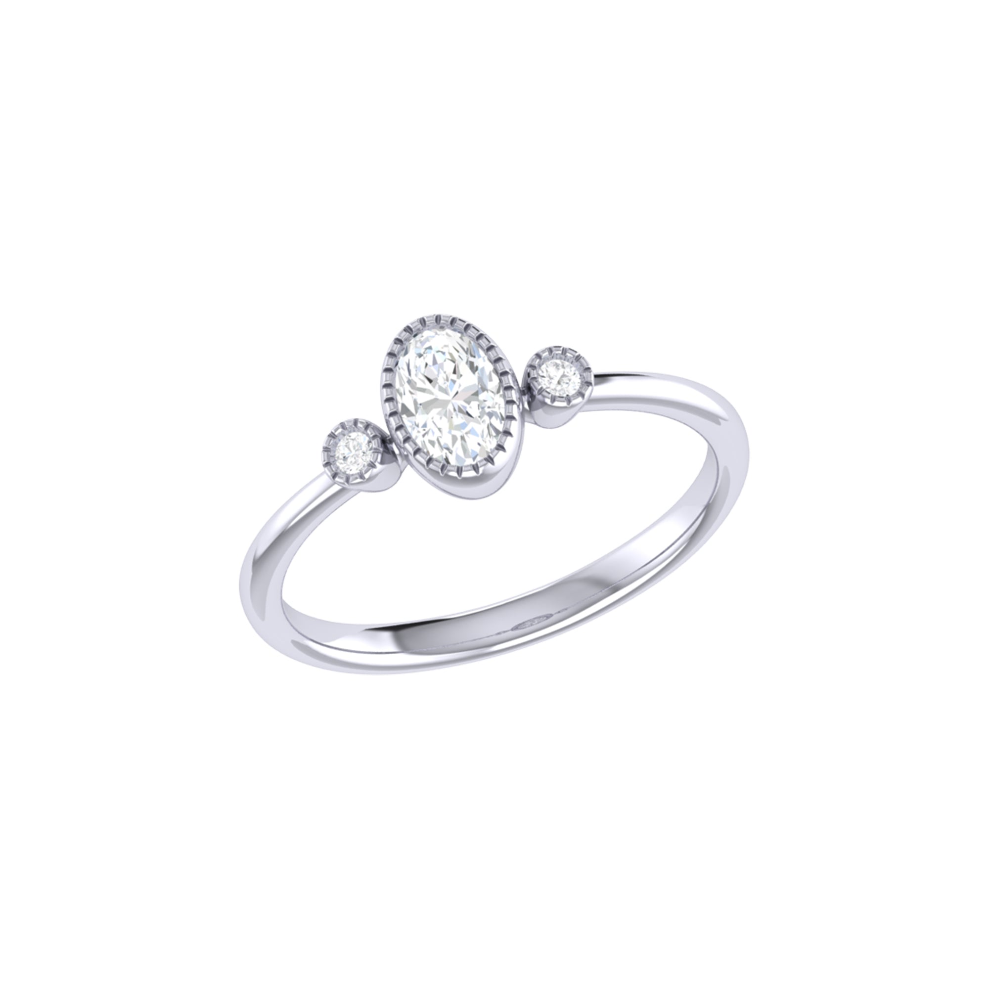 Oval Cut Diamond Birthstone Ring In 14K White Gold