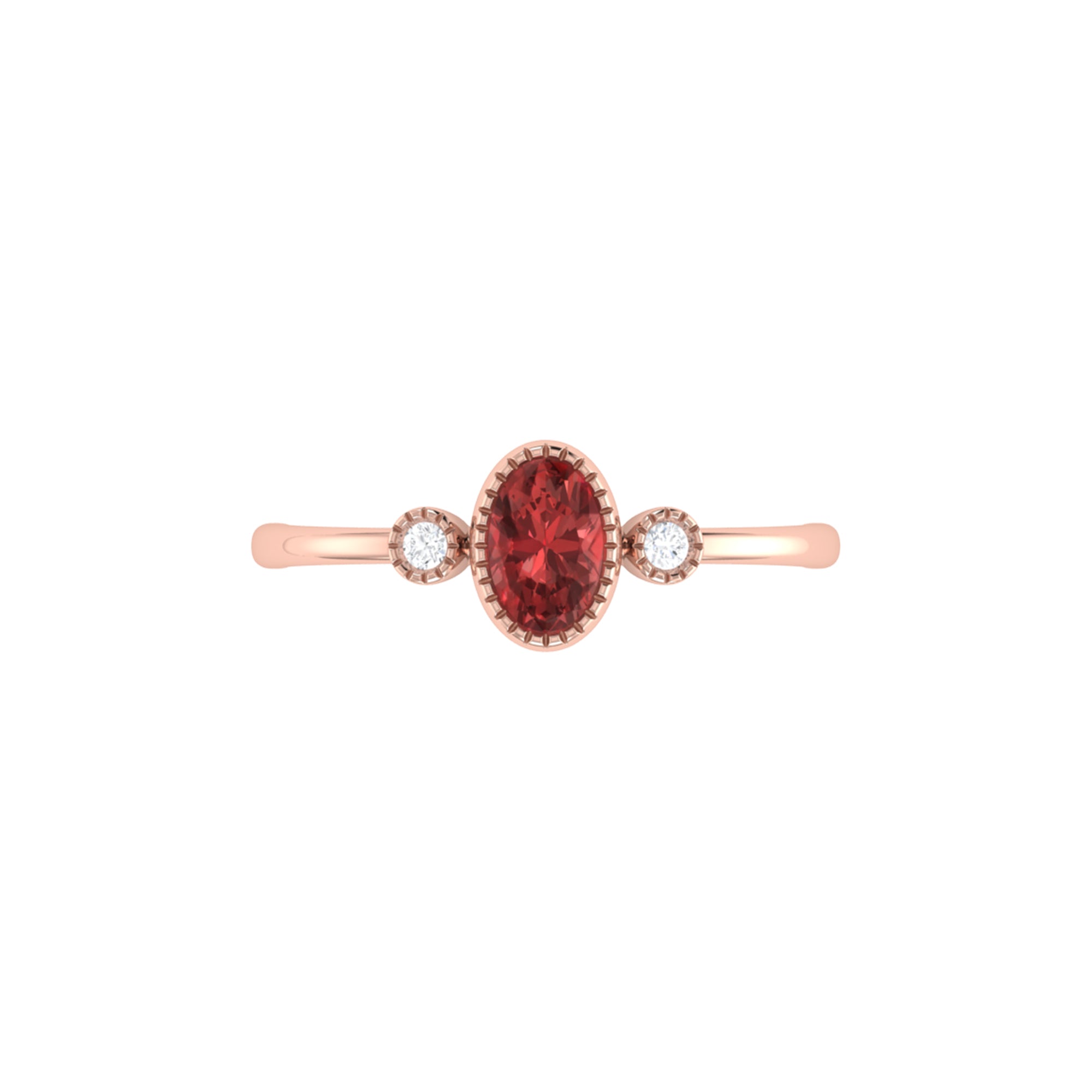 Oval Cut Garnet & Diamond Birthstone Ring In 14K Rose Gold